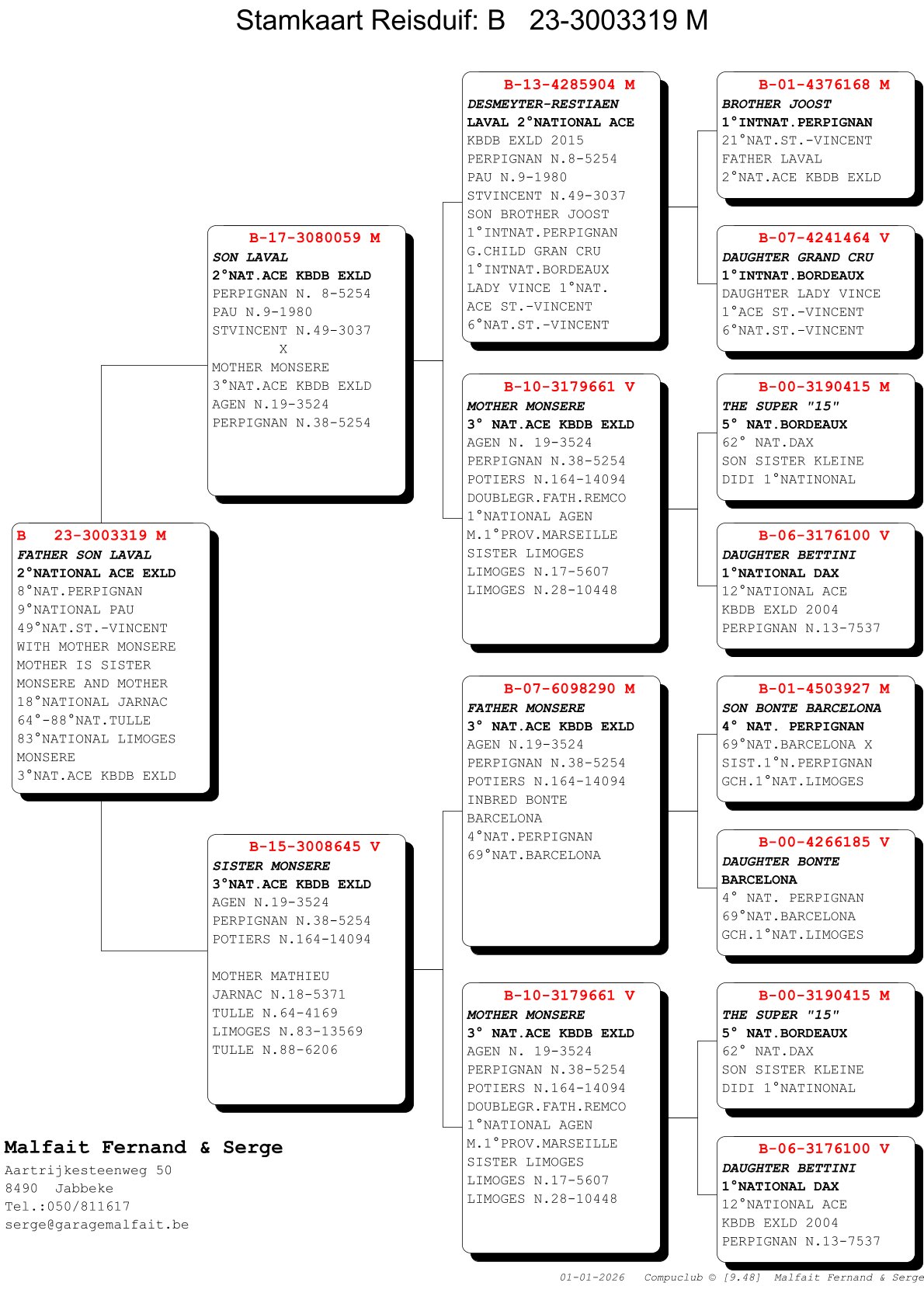 Is inbred “Monsere”; 3rd Nat As KBDB EXLD