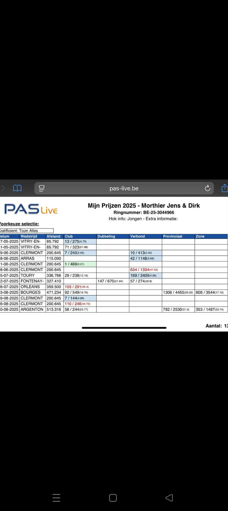Dhaenens Pigeons (Geert & Antoine) ,Oudenaarde - Jonge duif 3de ronde of duivin na seizoen