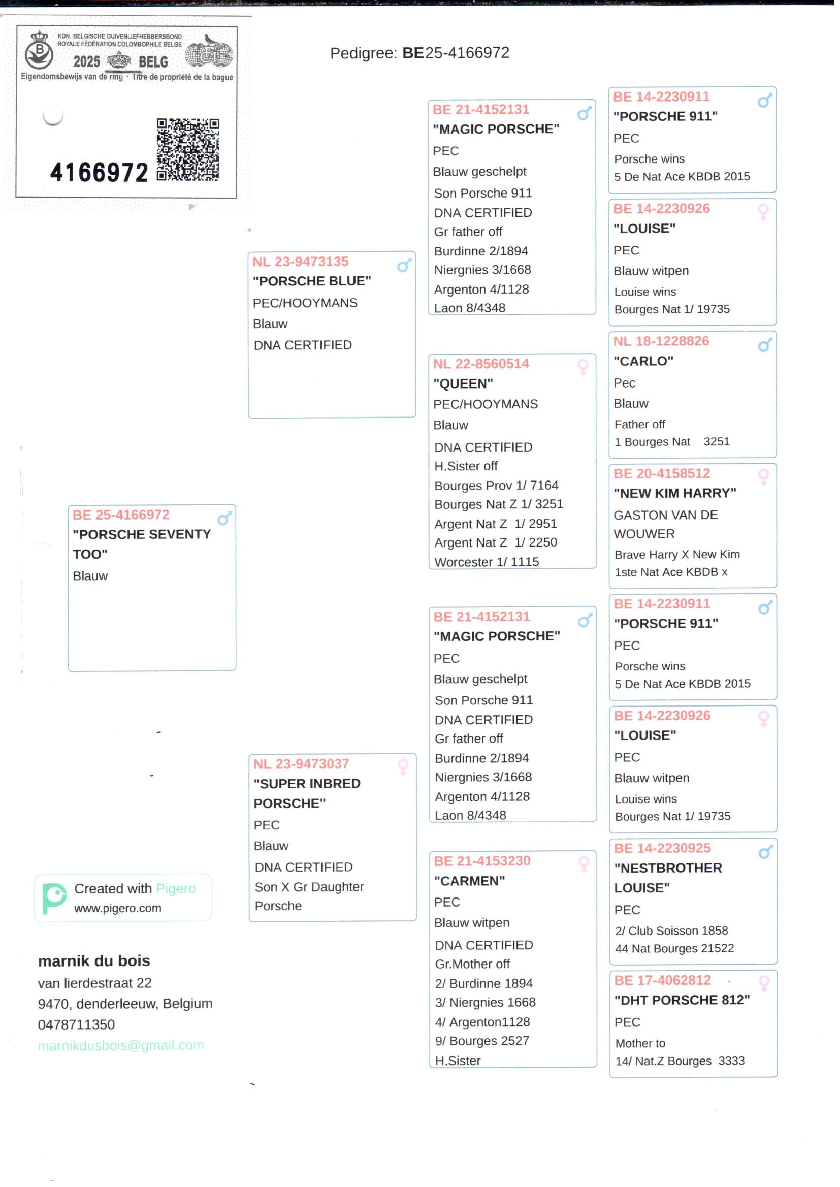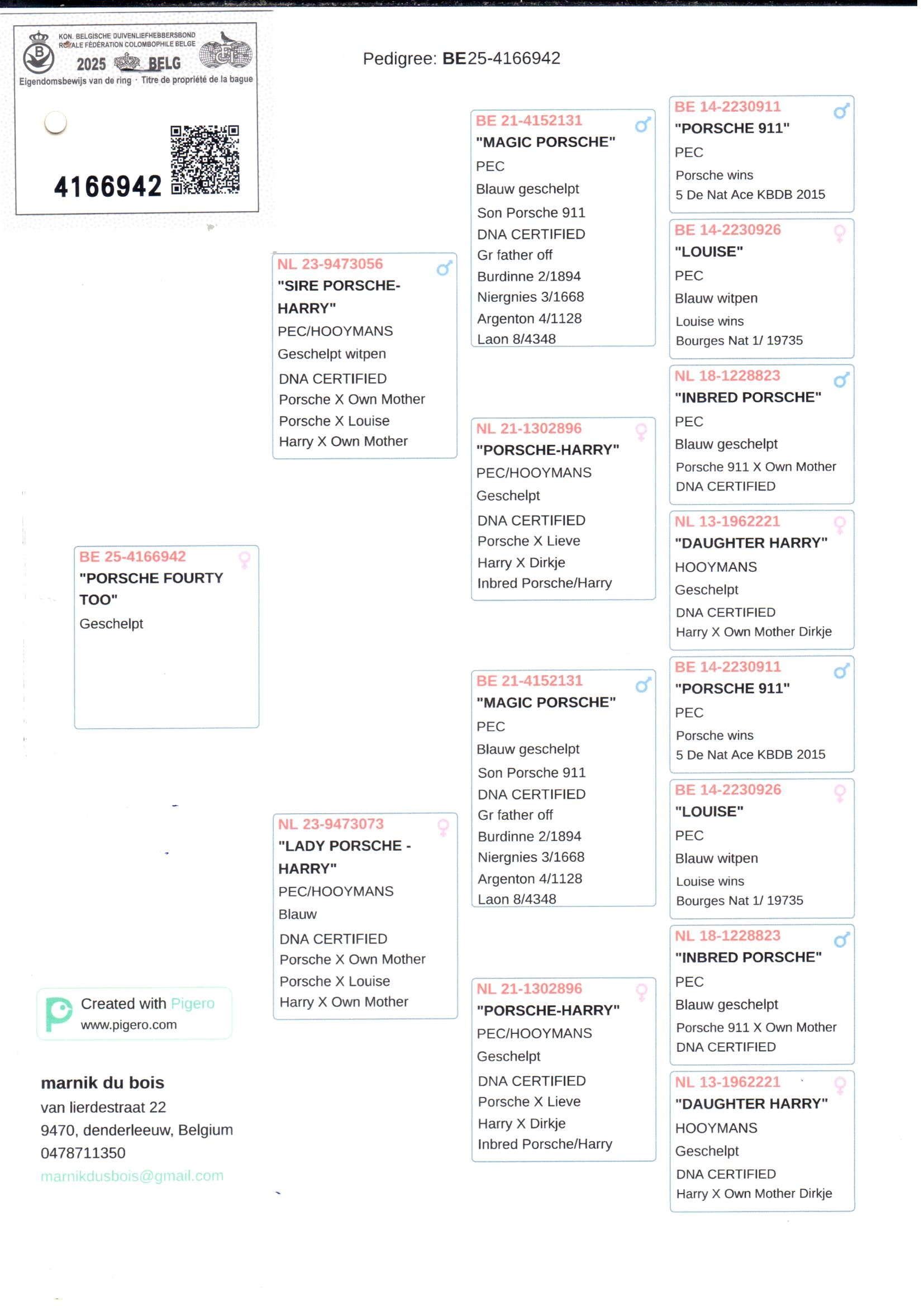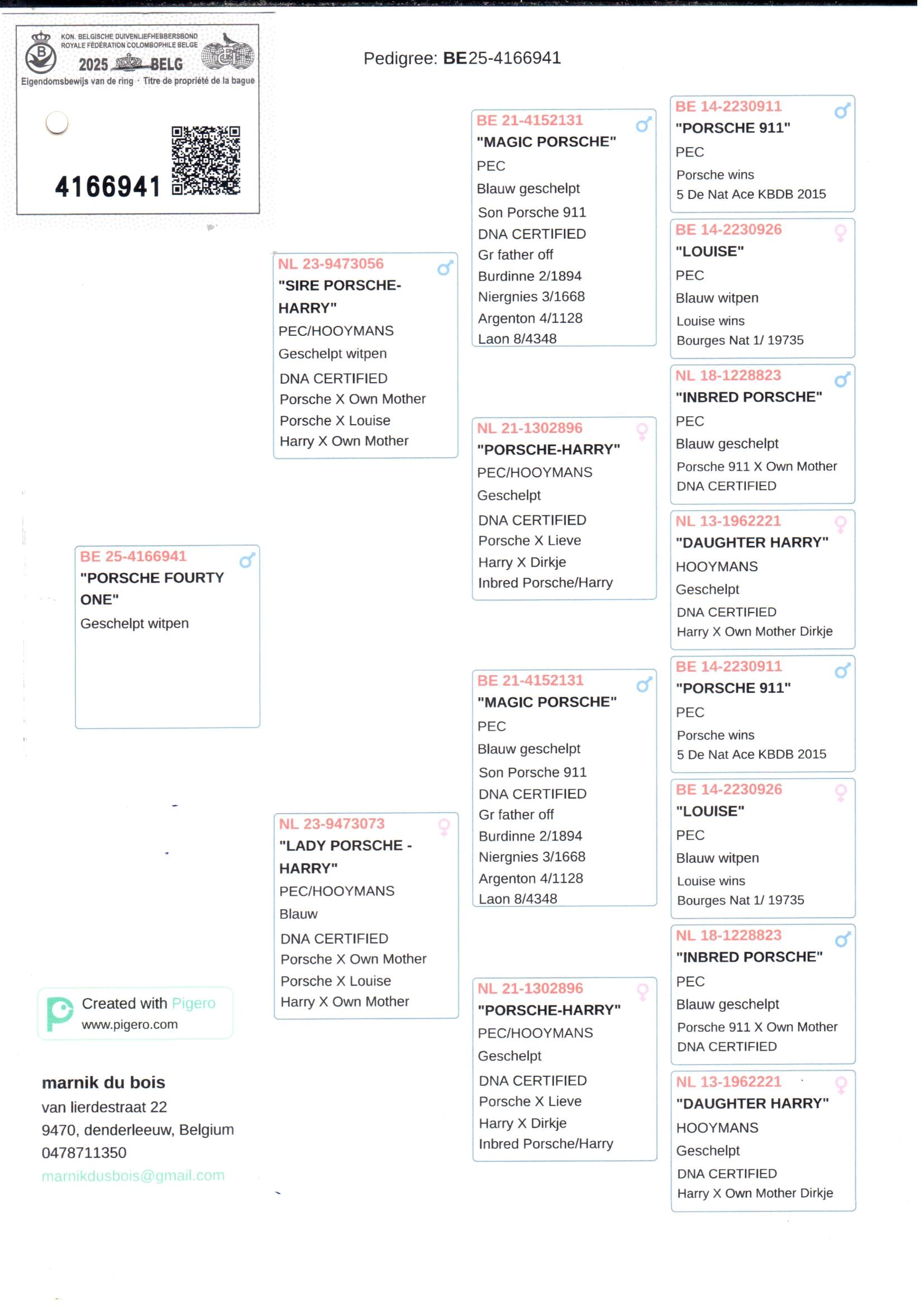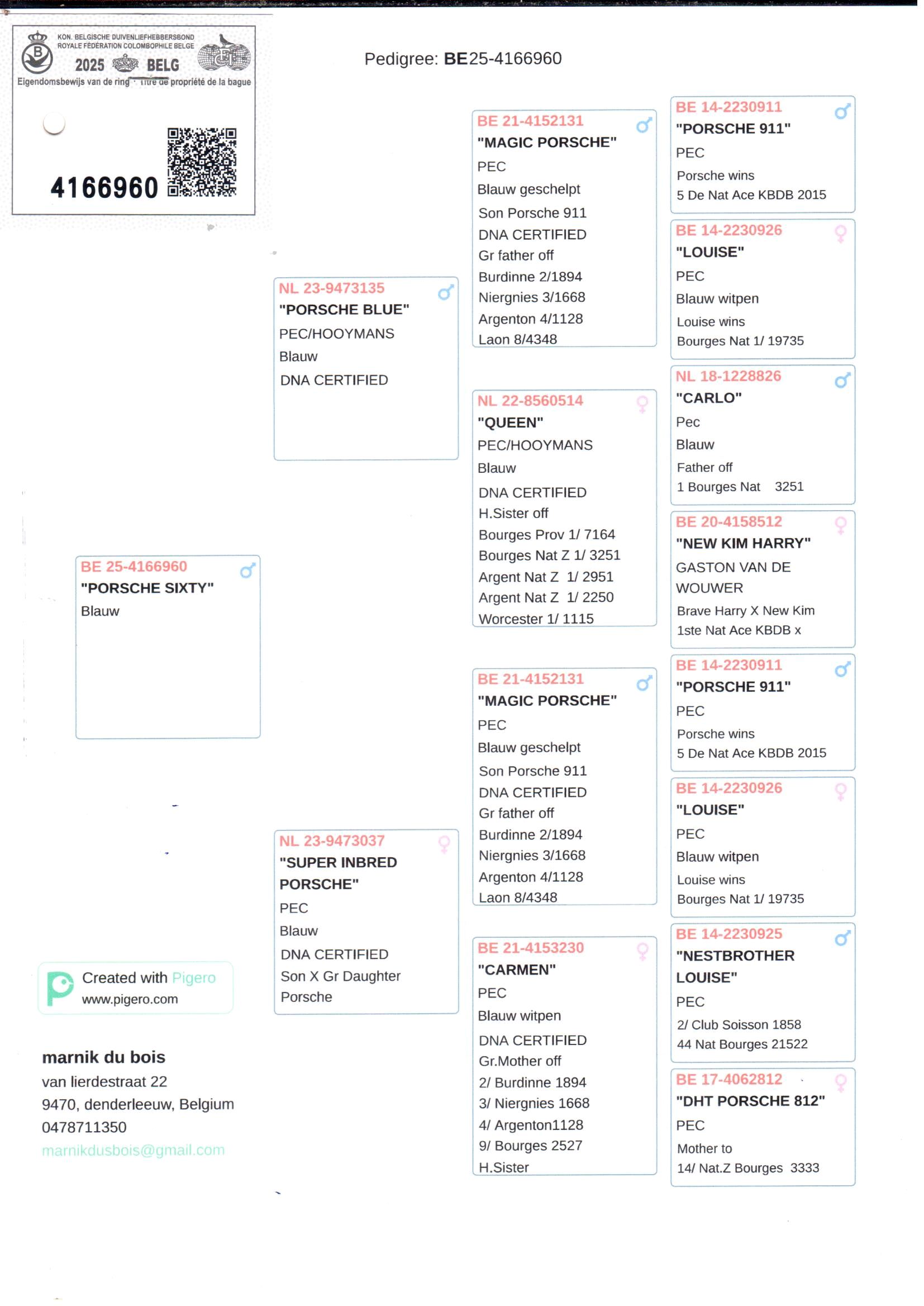 Bred from Porsche 911, Louise, inbred Porsche and Daughter Harry.