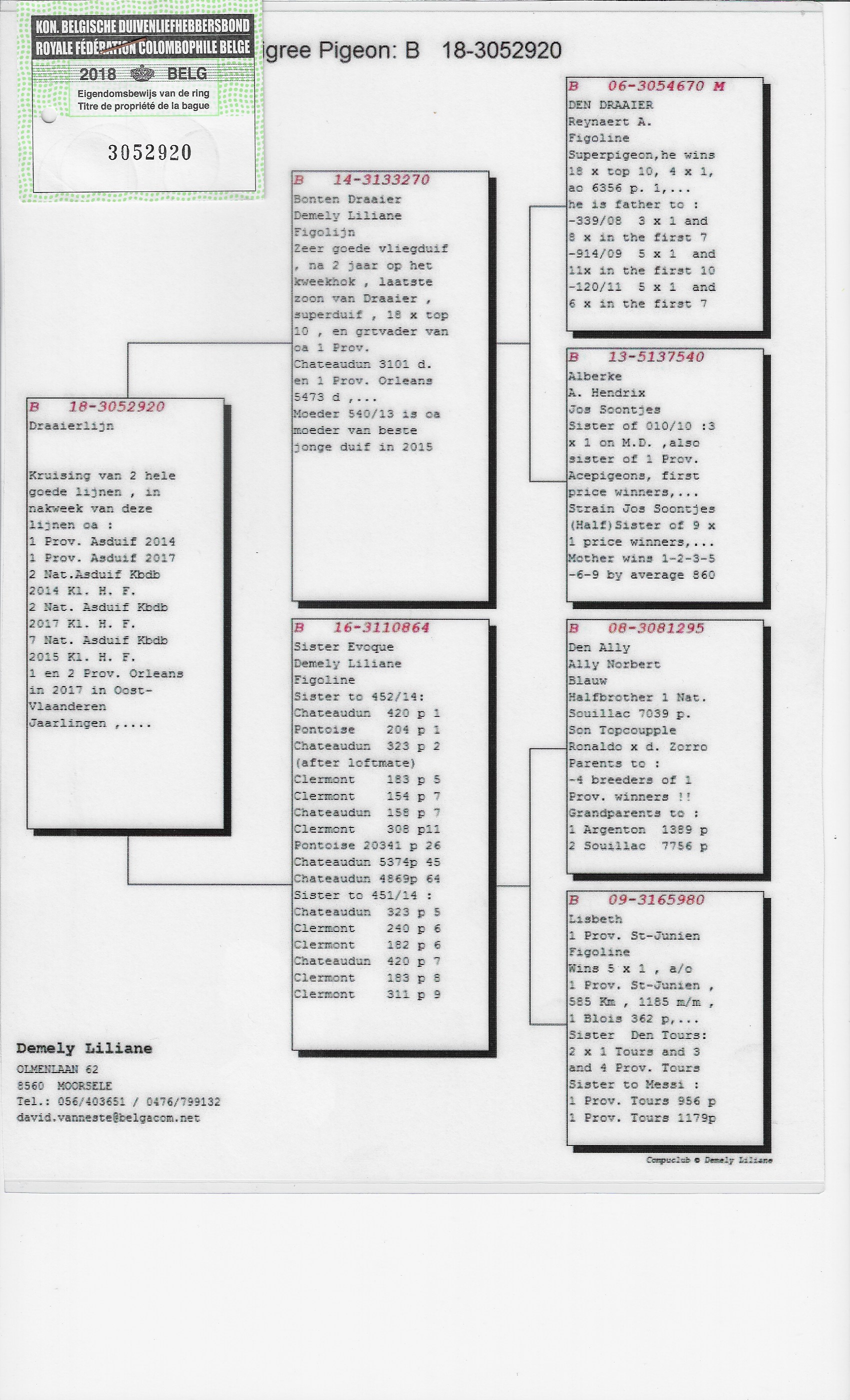 Father comes directly from Liliane Demely, champion loft from Moorsele