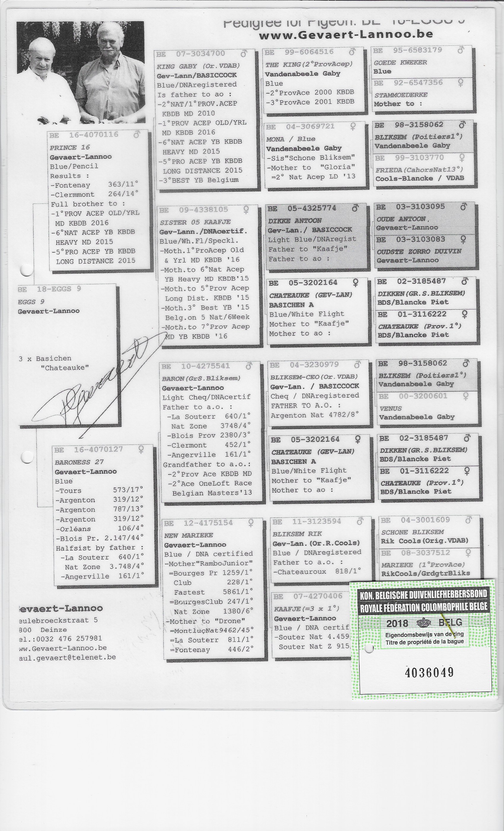 Mother is from a purchased egg from the champion loft Gevaert-Lannoo