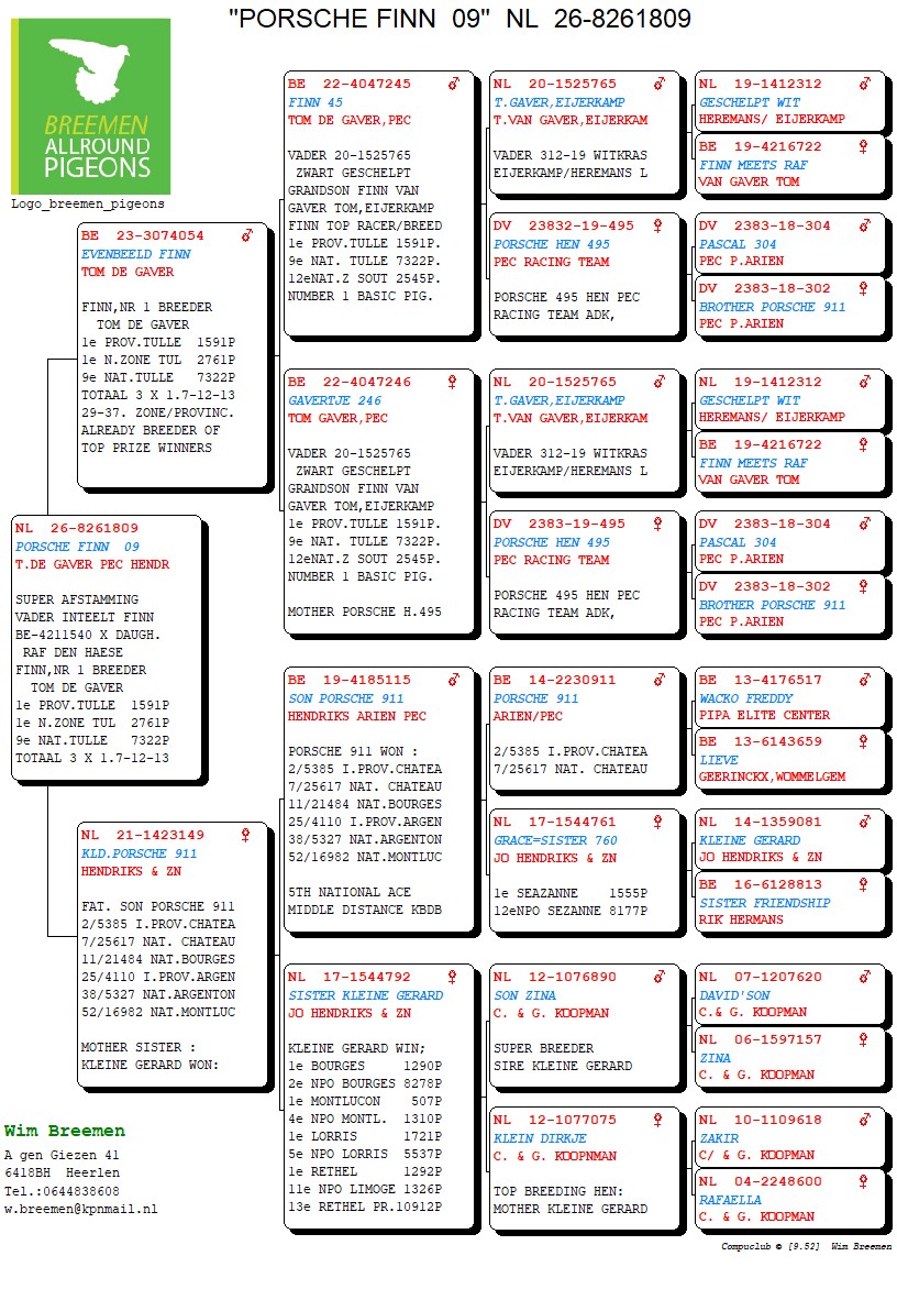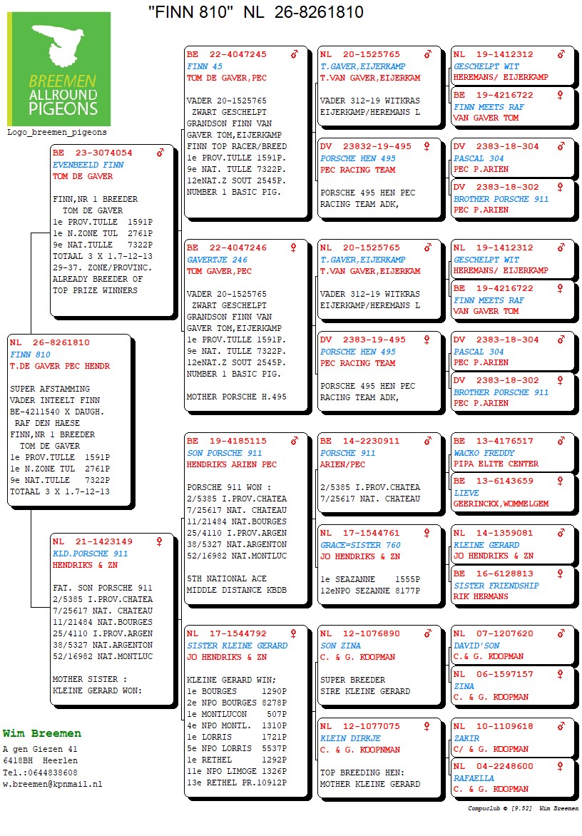 Super pedigree, father is inbred “Finn” × daughter of Raf Den Haese