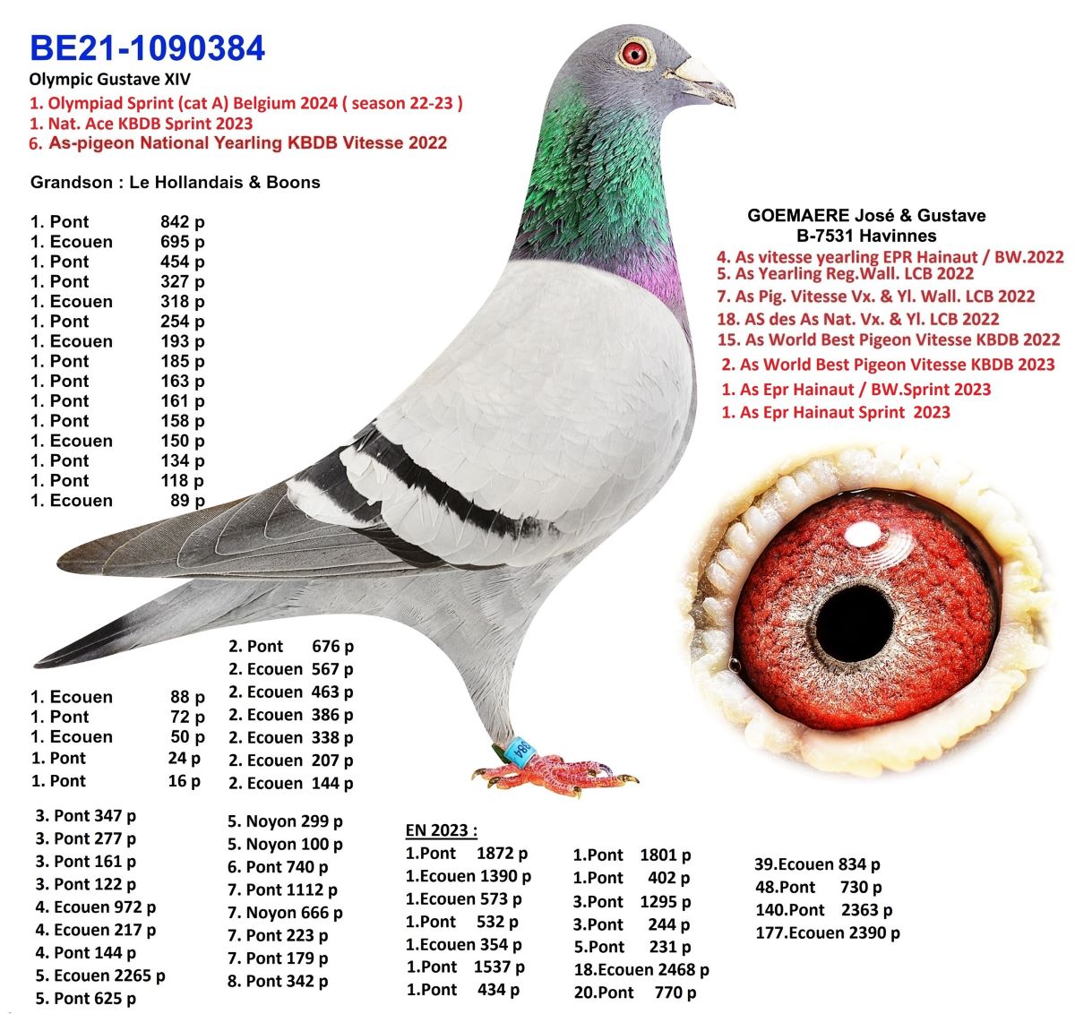 Jose & Gustave Goemaere de Havinnes - Tournai (Hainaut) win with BE21-1090384 'Olympic Gustave XIV'