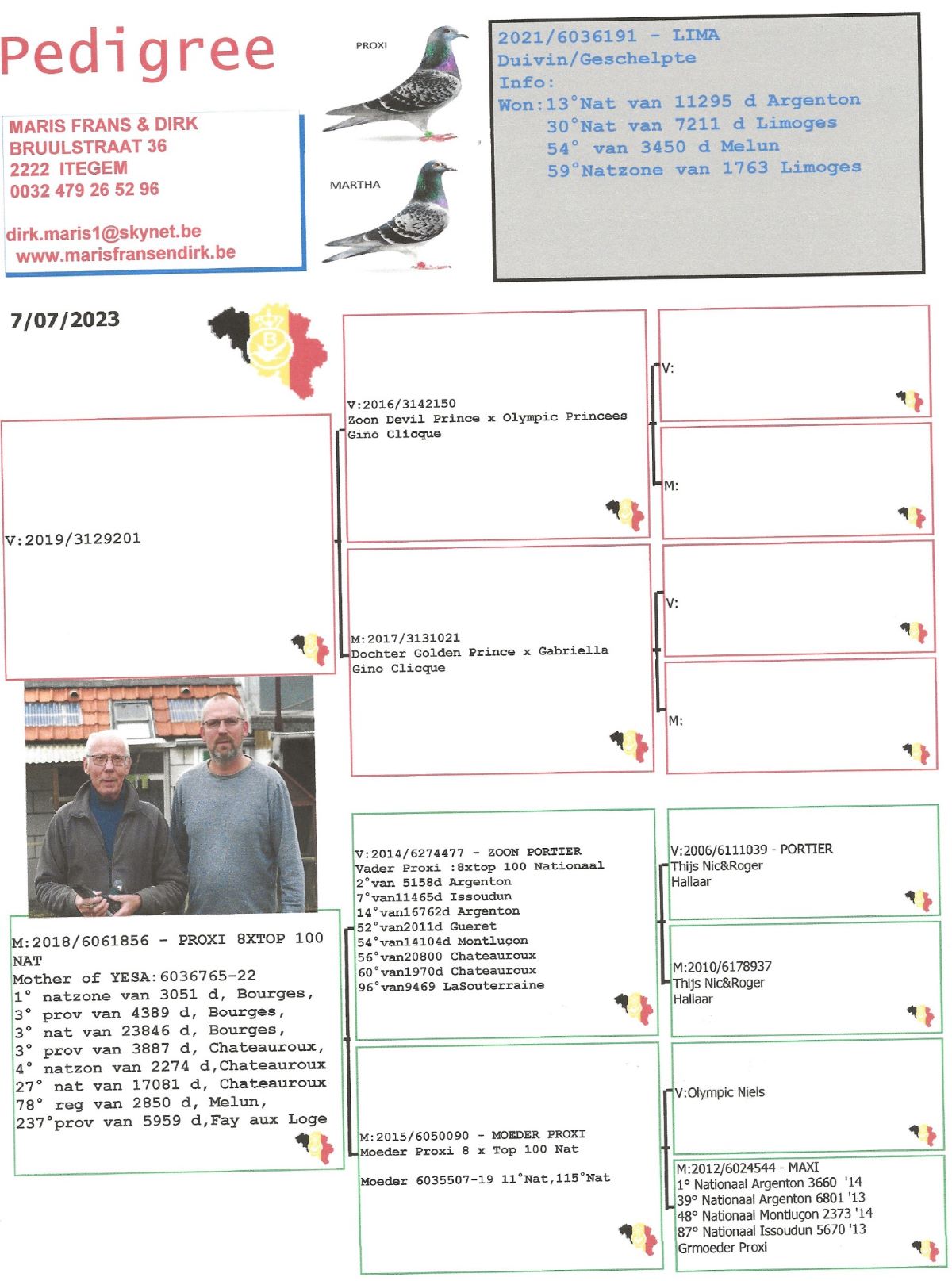 Frans & Dirk Maris from Itegem - Heist-op-den-Berg (Antwerp) win with BE21-6036191 'Lima' de