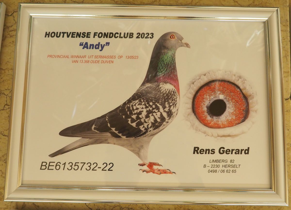 Gerard Rens (°1948) from Herselt (Antwerp) wins with BE22-6135732 'Andy'