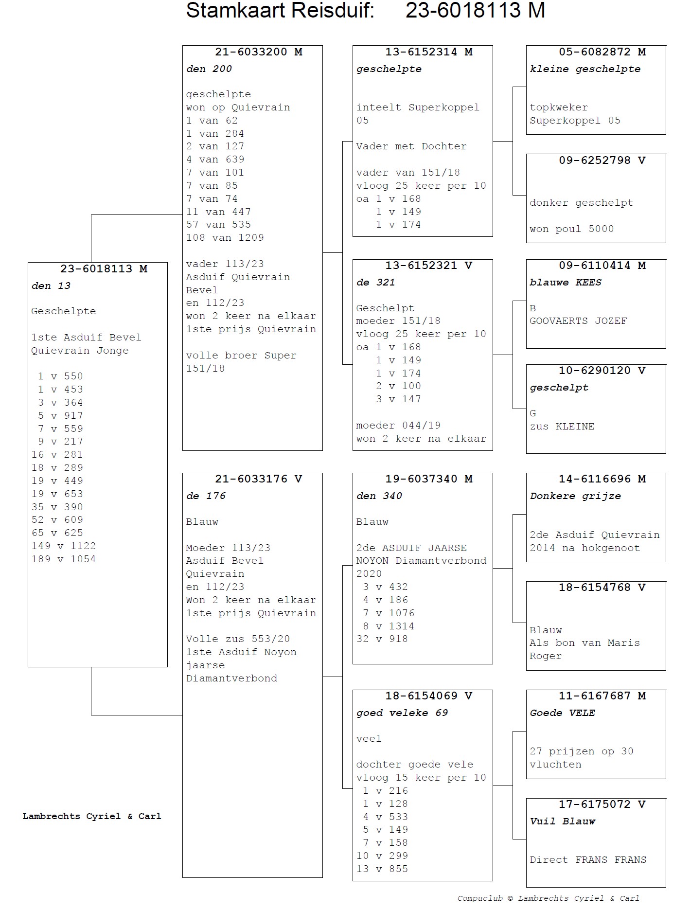 BE23-6018113 'den 113' 1st Ace Pigeon SPEED 24 & 23 >LAMBRECHTS PIGEONS (+Photo/Pedigree)!