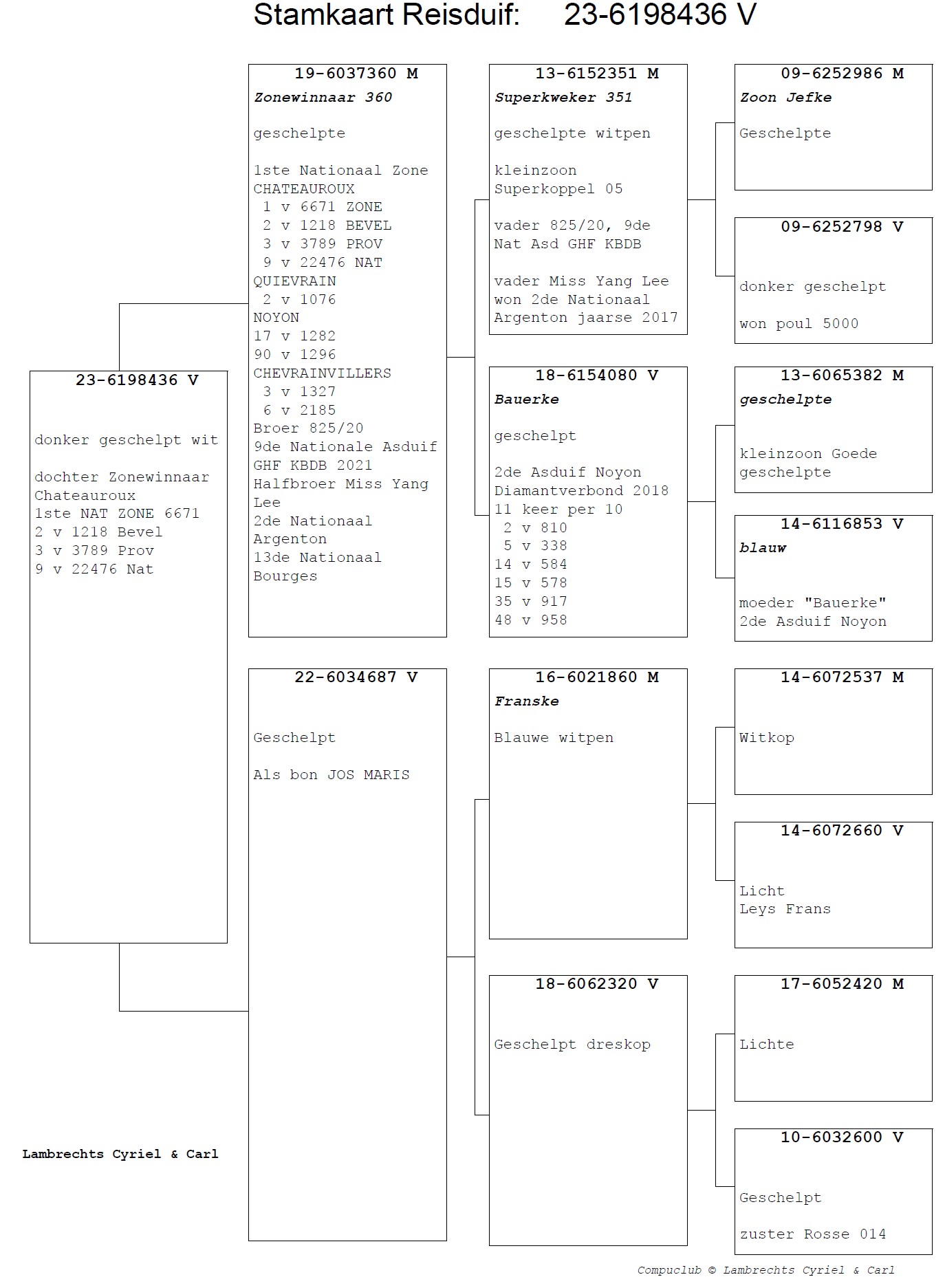 + PHOTO + PEDIGREE ! > CYRIEL, CARL, BERT & ROBBE LAMBRECHTS PIGEONS (Berlaar) wins with BE23-6198436 '436'