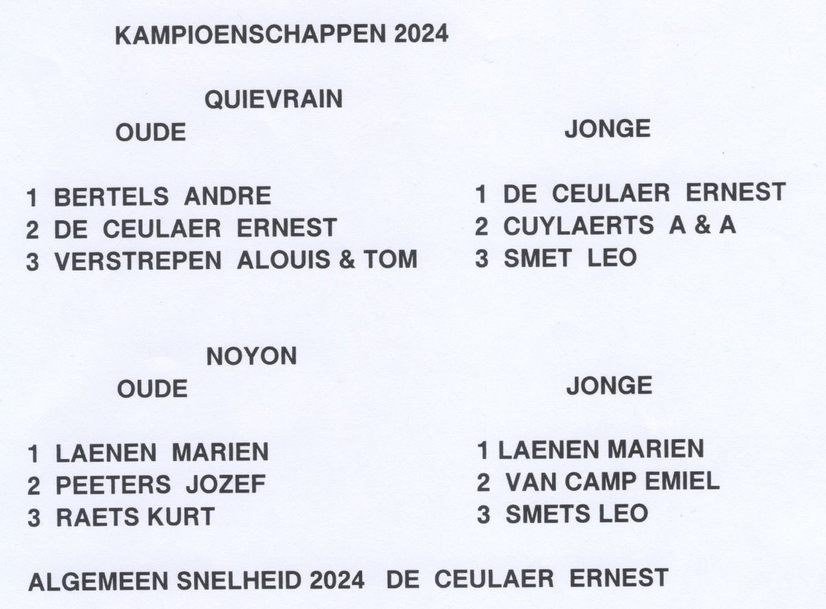 - 1st Champion Old birds Middle Distance 2024 NOORDERWIJK