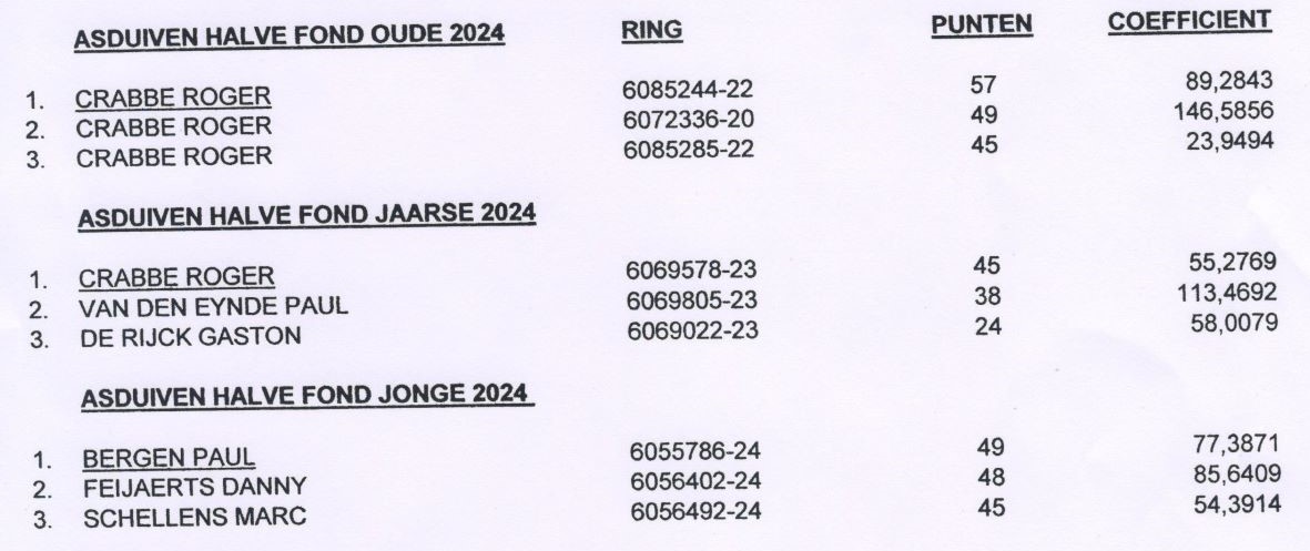 - 1st Champion Old birds Middle Distance 2024 HEIST-GOOR