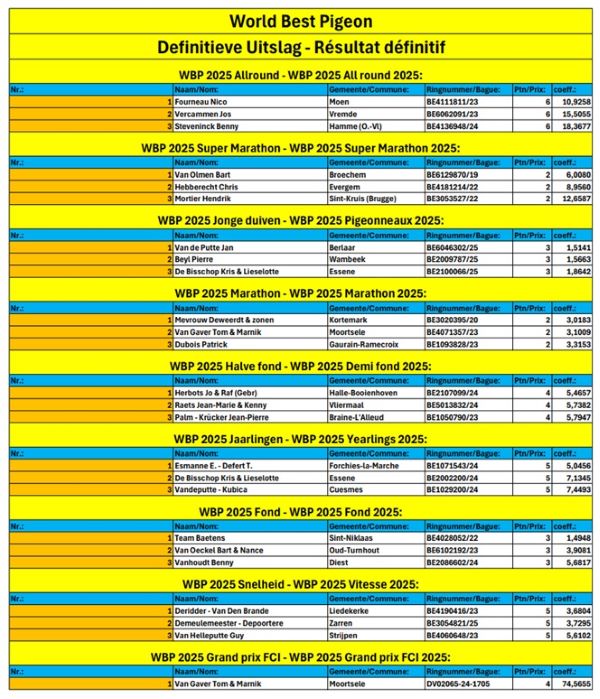 World Best Pigeon 2025: Final Ranking - Ranking 1-2-3