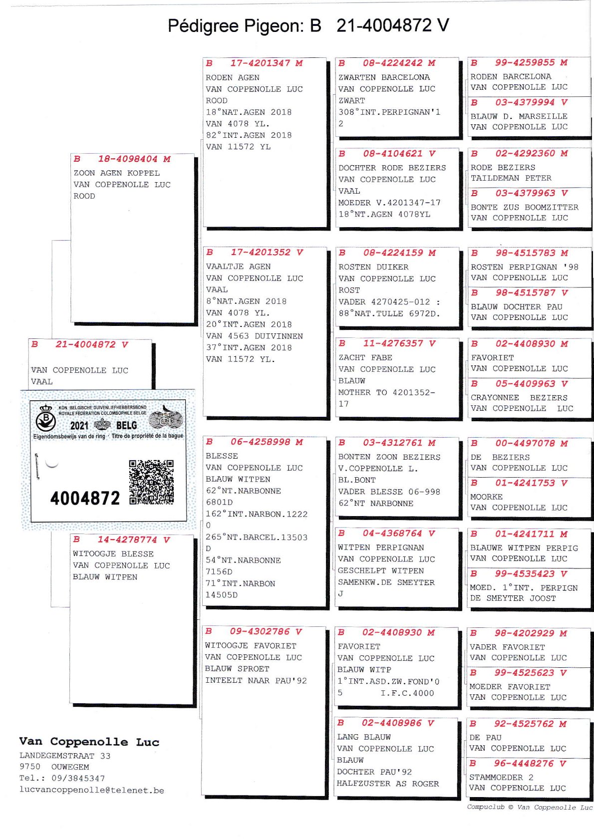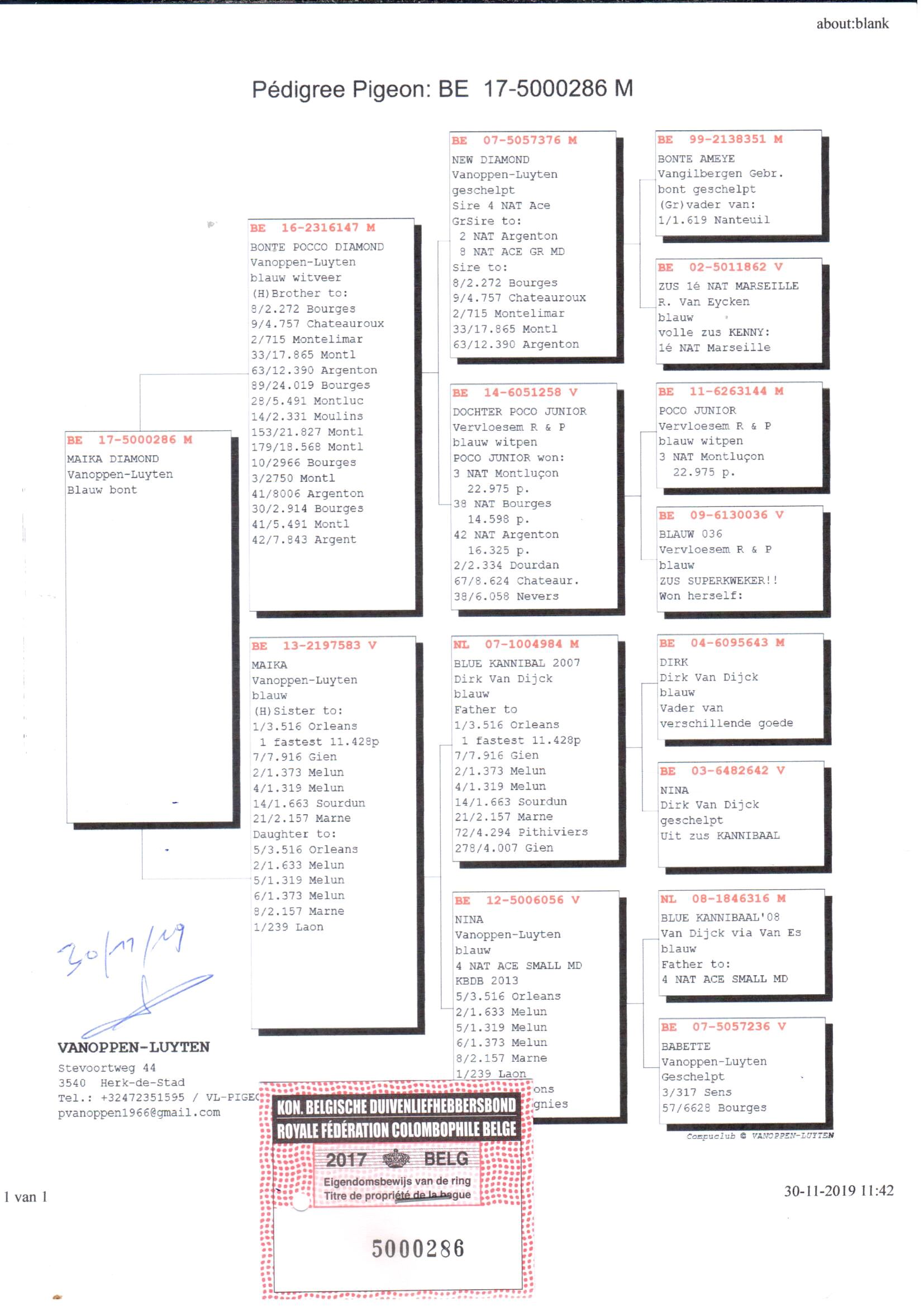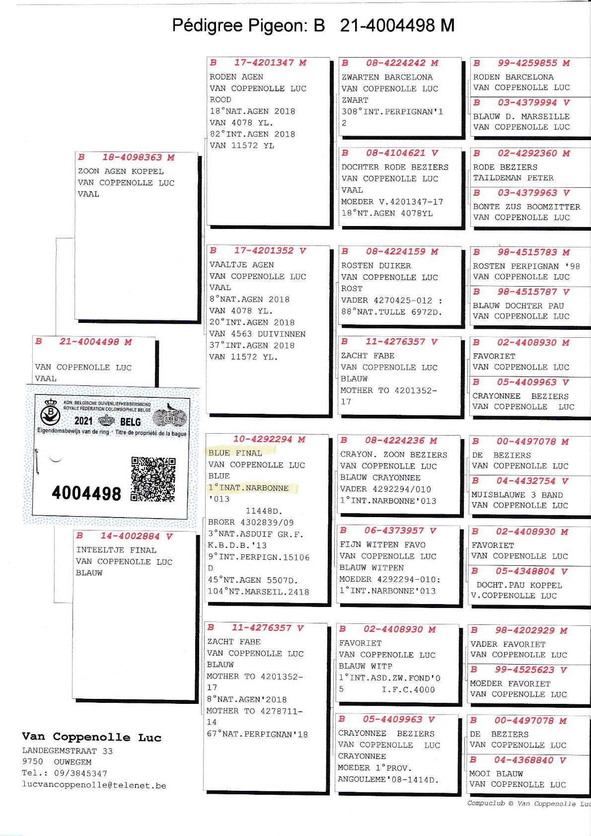 Is grandson of foundation pigeons “De Vale” and “Montauban”