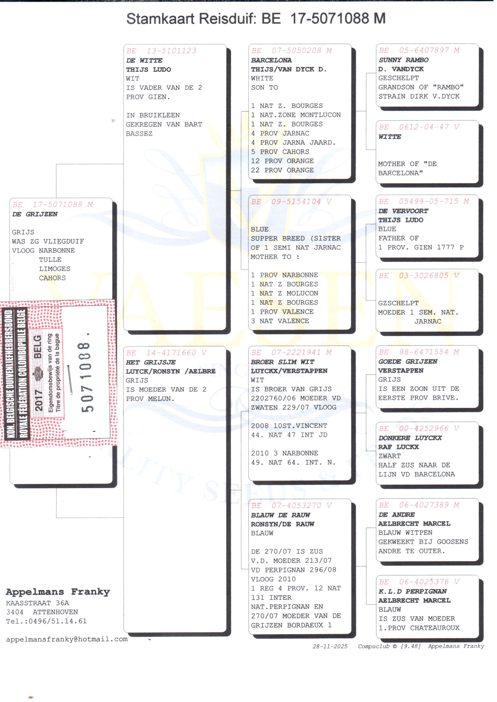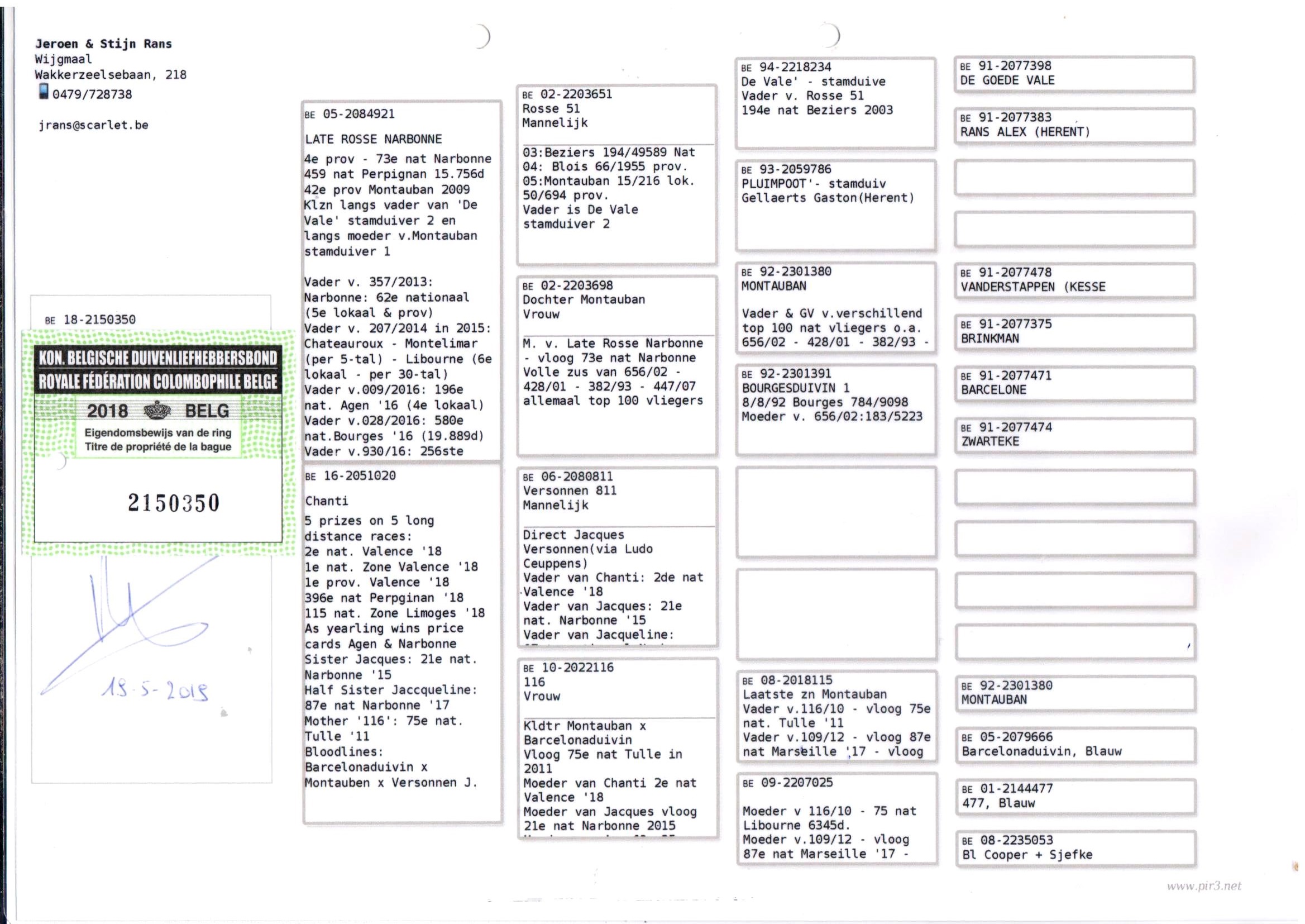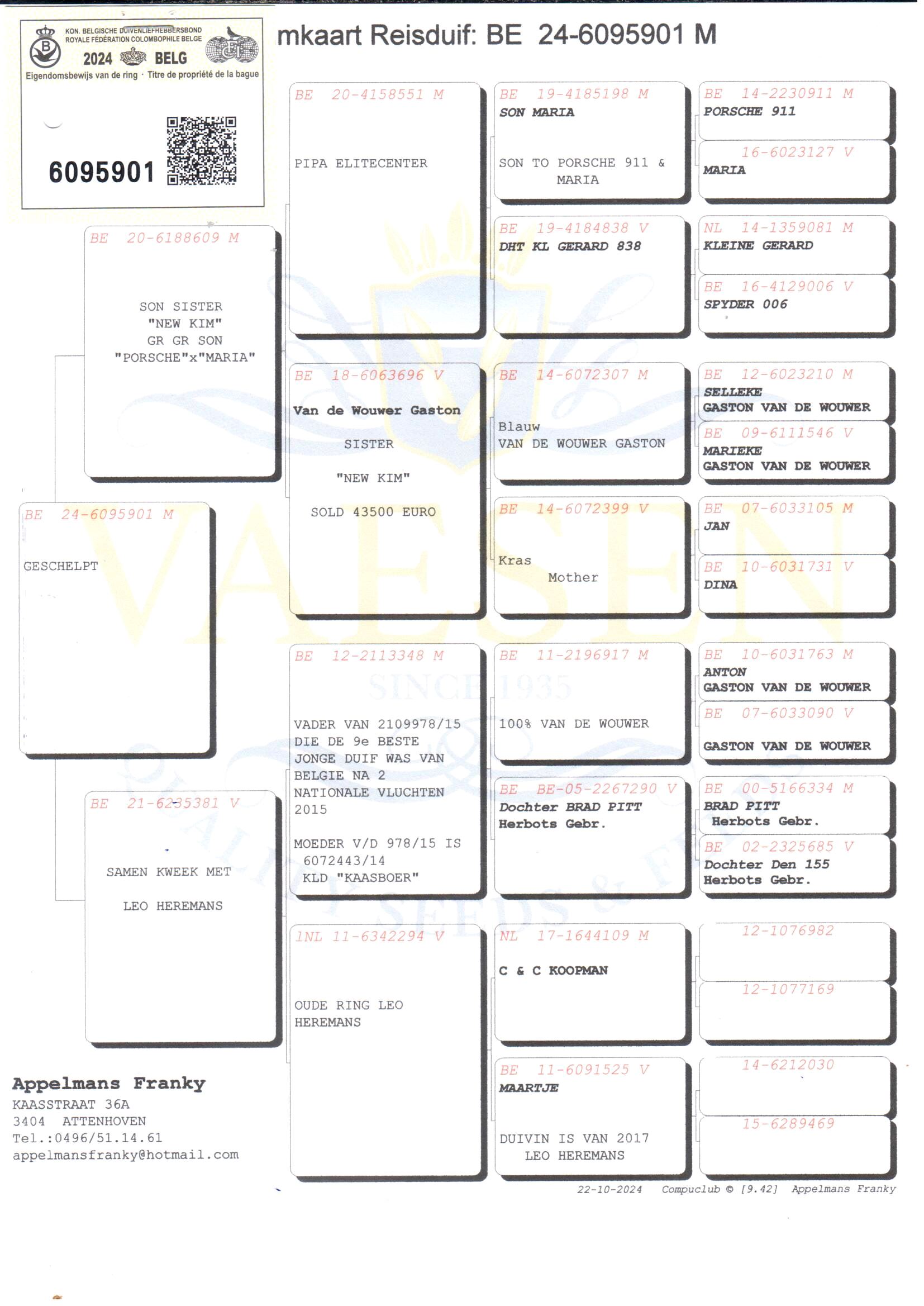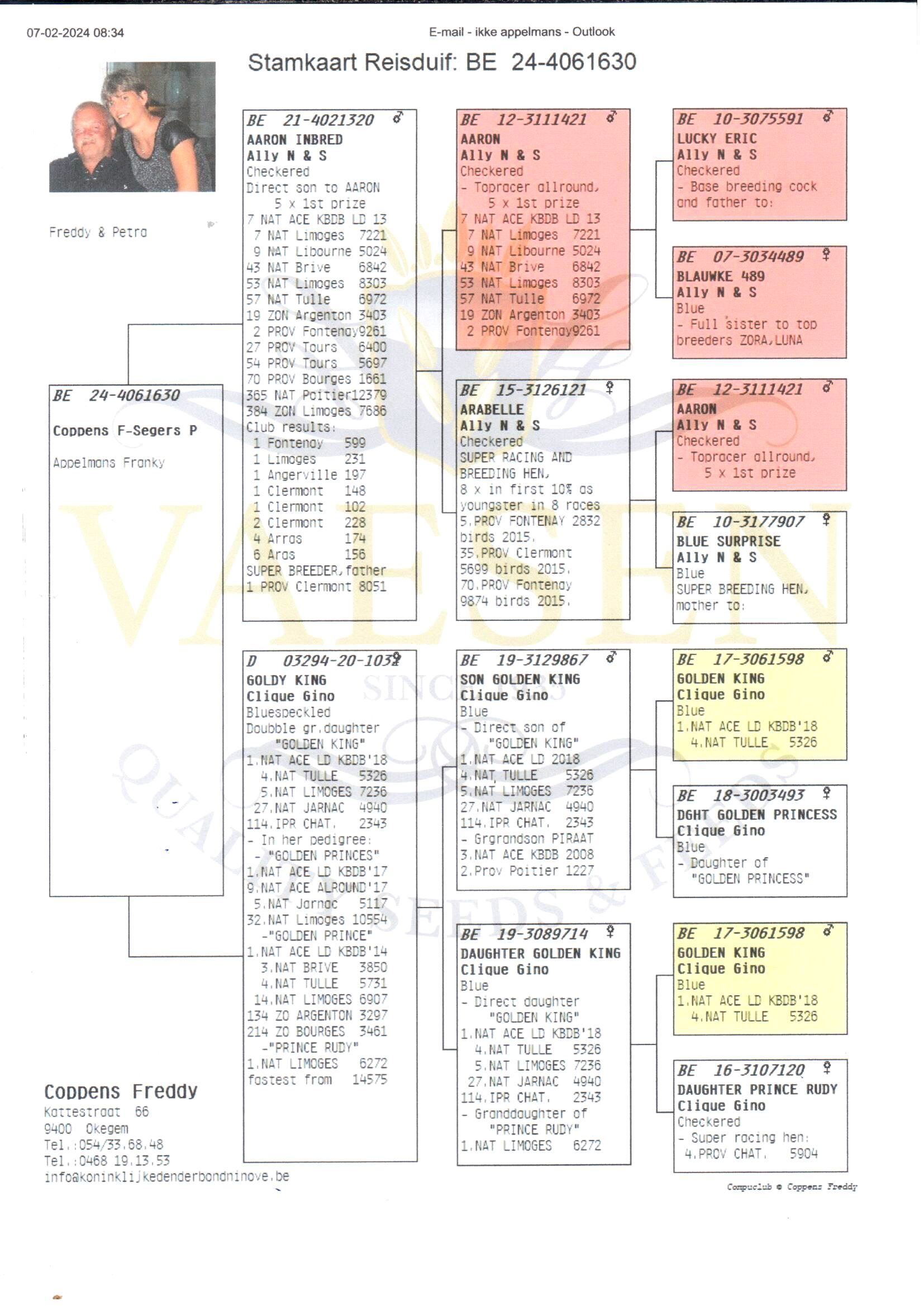 Father is father of 978/15; 9° best young pigeon of Belgium after 2 national races in 2015