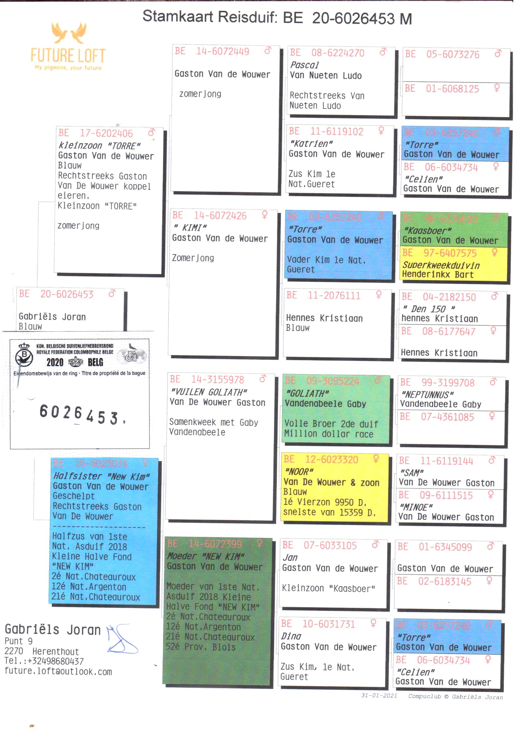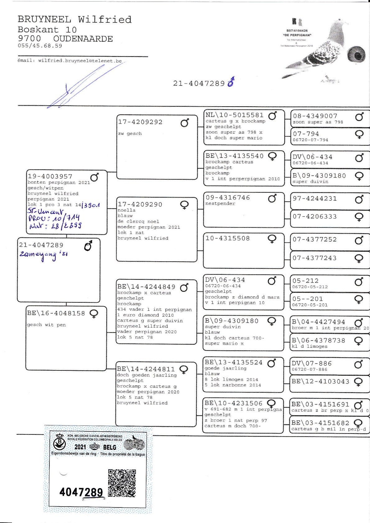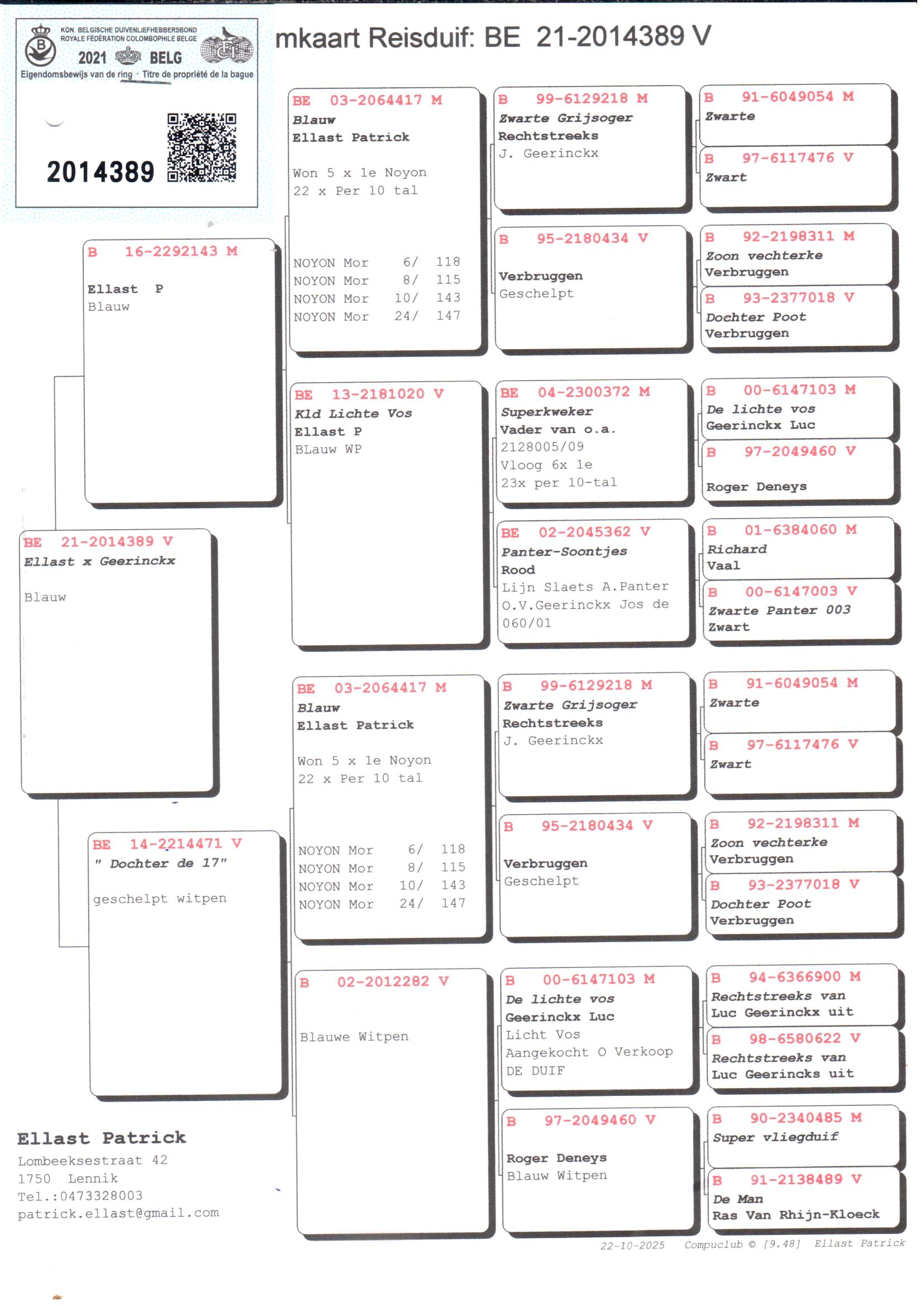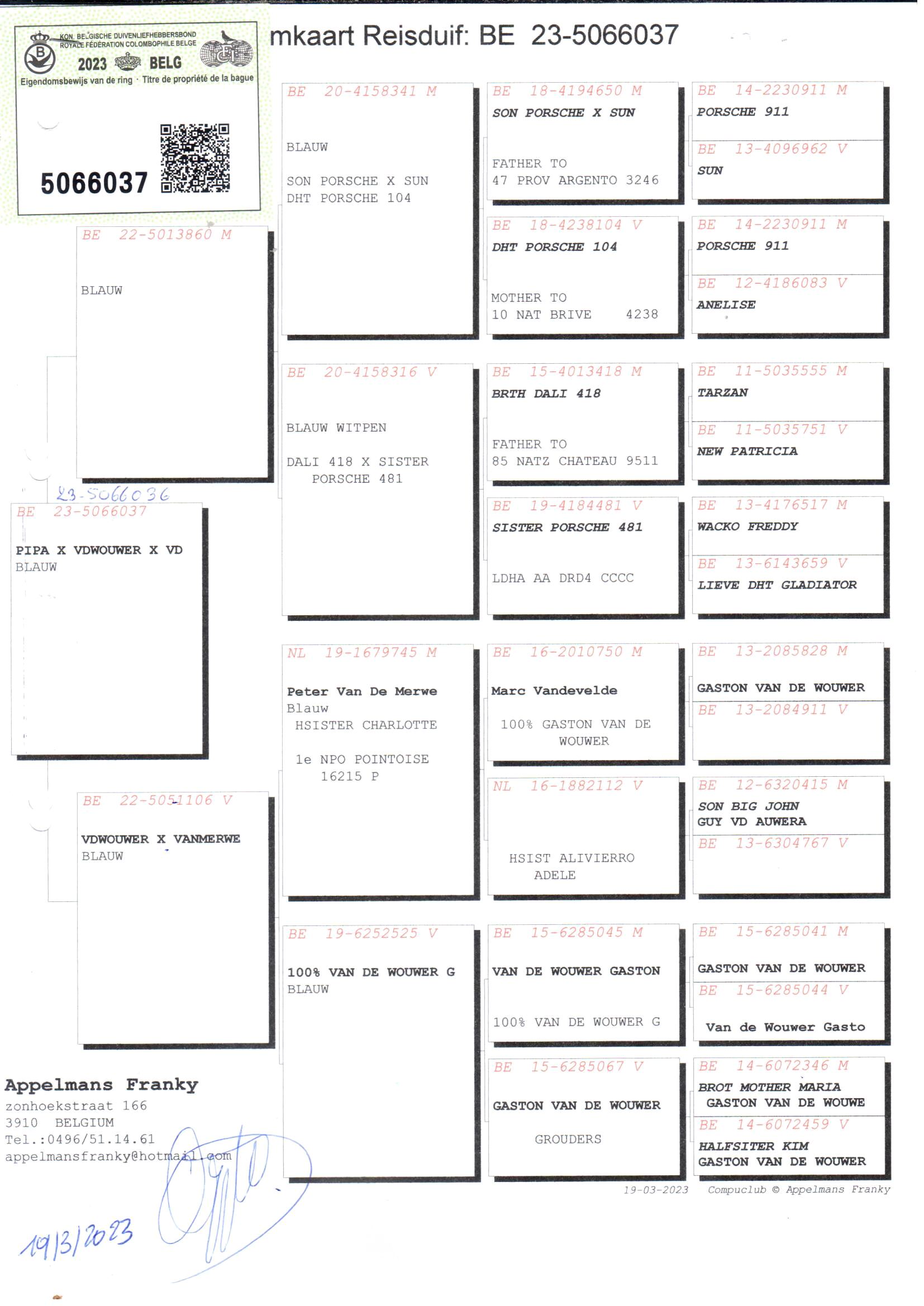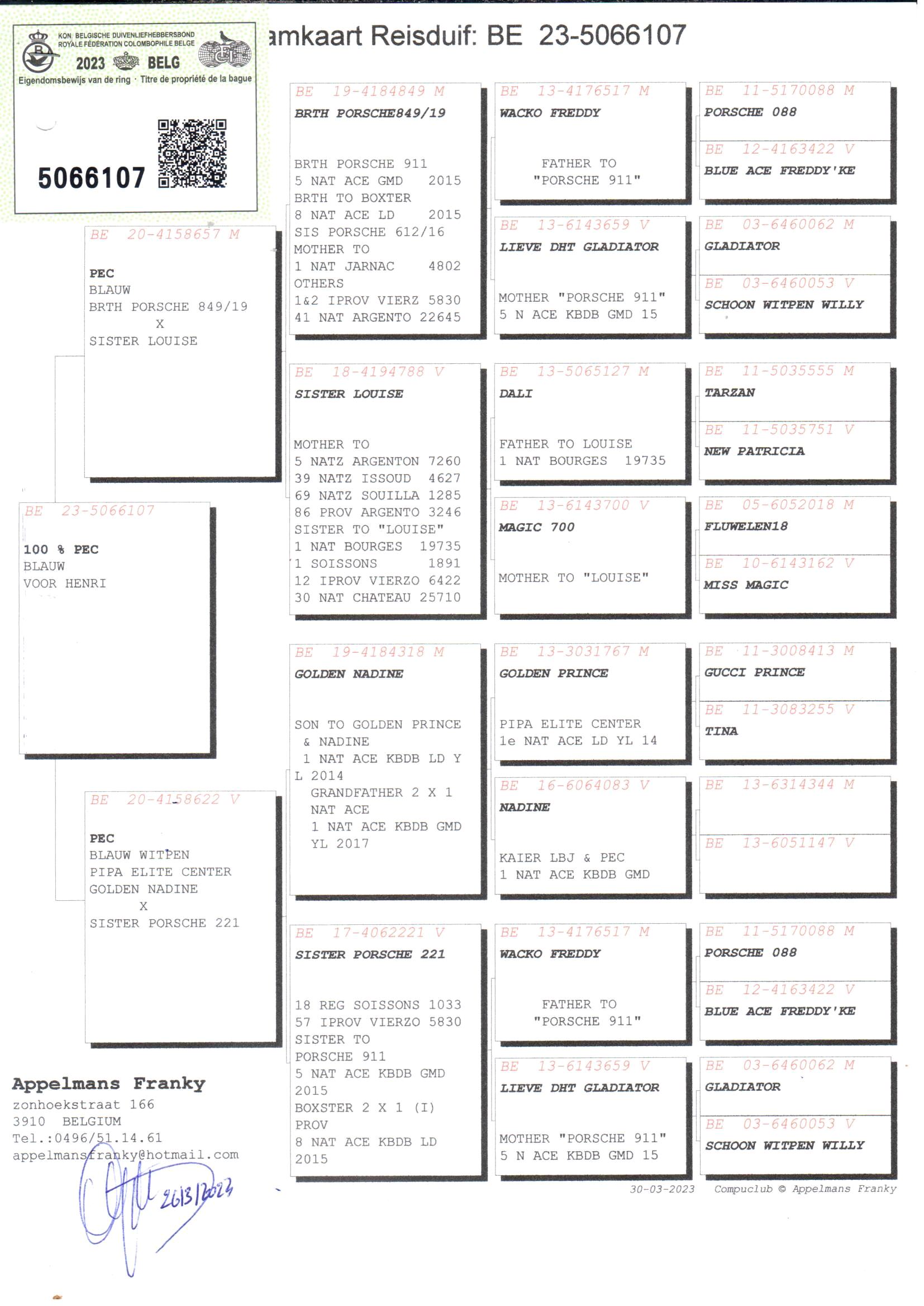 Father is father of 978/15; 9° best young pigeon of Belgium after 2 national races in 2015