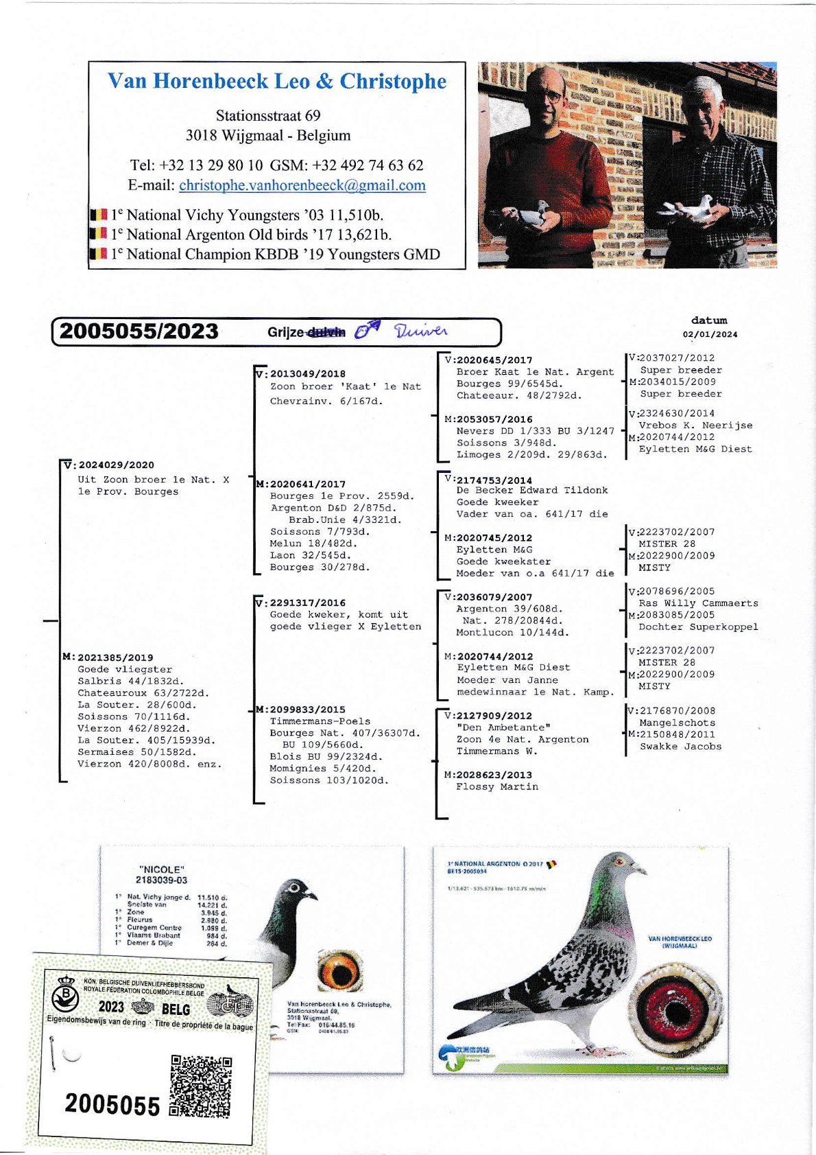 Régulièrement, Pitts propose un groupe de pigeons en tant que « collection ». Ces collections sont proposées par des tiers et proviennent souvent de différents colombophiles. Il s'agit de pigeons d'une qualité irréprochable, avec un pedigree formidable pour lequel il n'est généralement pas nécessaire de donner plus d'explications. Ces pigeons sont tous soumis à un contrôle de qualité avant la vente et sont toujours présents lors des journées d'exposition. Regardez, jugez par vous-même et enchérissez sur ces opportunités uniques de ramener à la maison de véritables pigeons du meilleur de la colombophilie internationale!