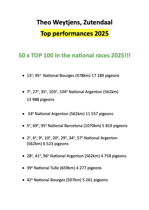 Weytjens Theo, Zutendaal - duif ter plaatse