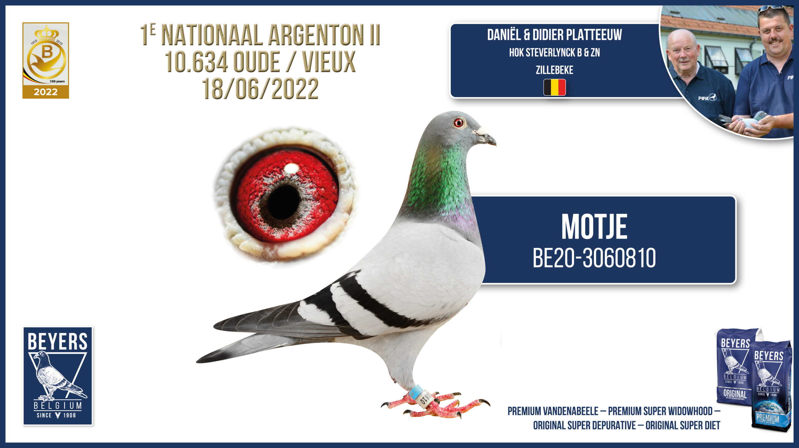 Comme le veut la tradition, nous ouvrons la vente aux enchères avec le don d'un jeune pigeon de Platteeuw D&D, a choisir sur rendez-vous.