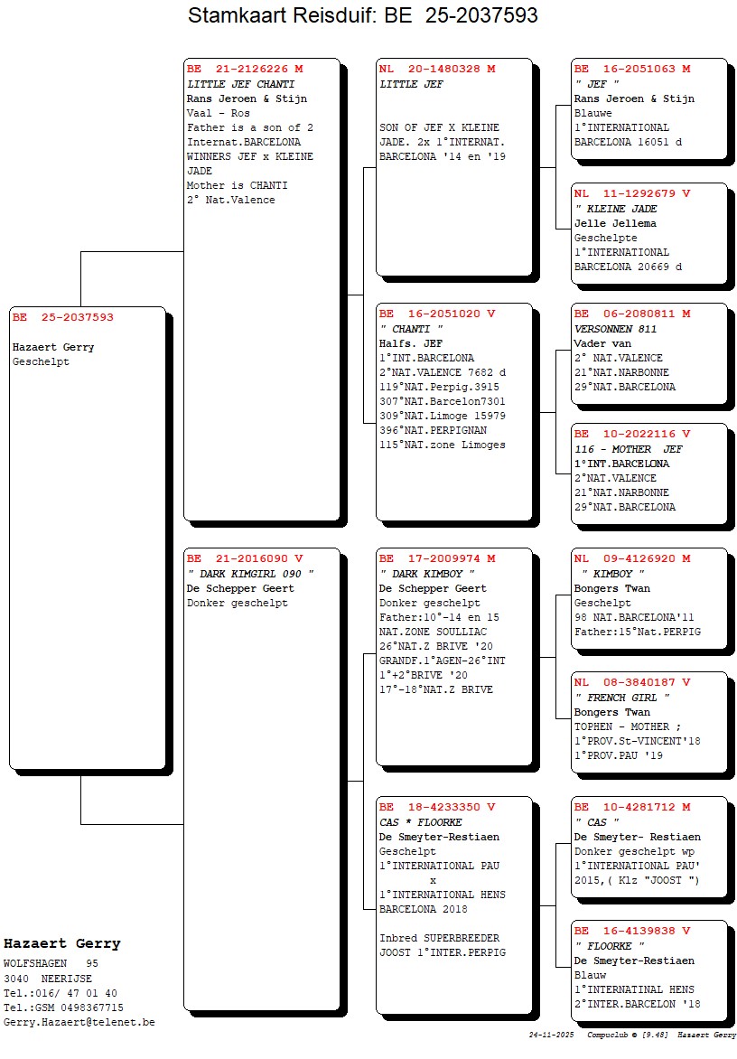 Father is son of 2° Inat Barcelona winners “Jef” & “Kleine Jade”