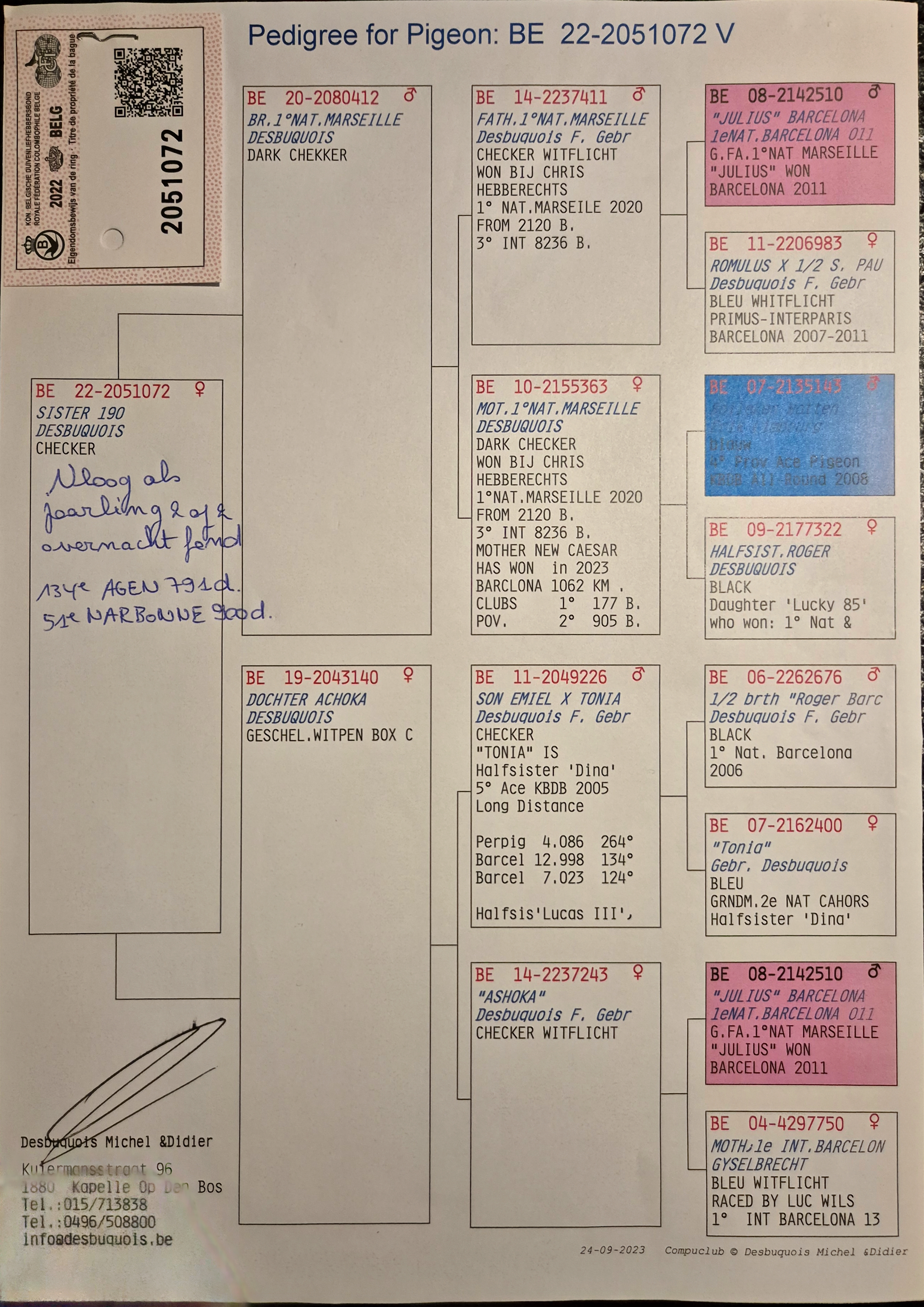 Brother of 1st National Marseille ’20, 2,120 birds – 3rd International, 8,236 birds