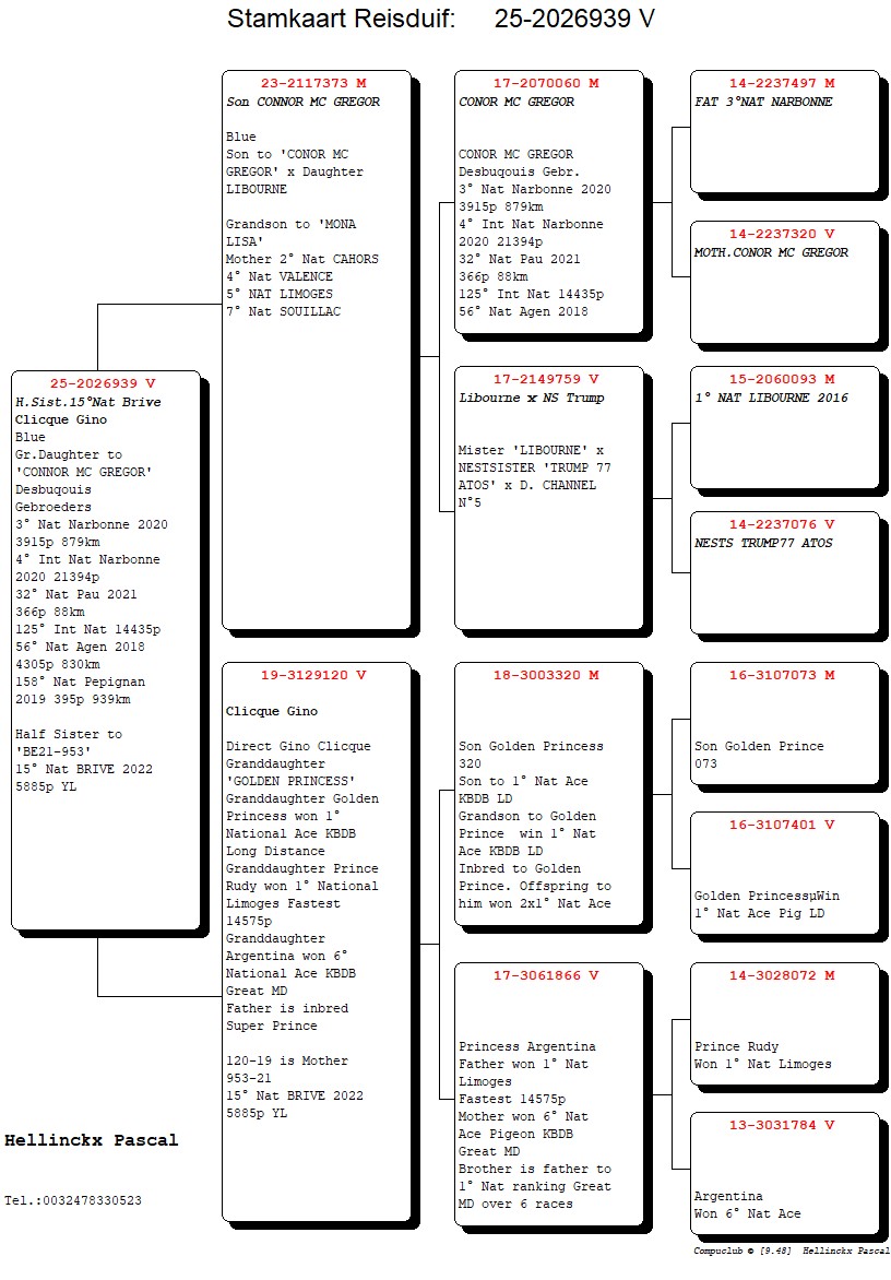 • 1st Provincial – 5th National, 3,966 birds – 17th International Perpignan, 12,339 birds