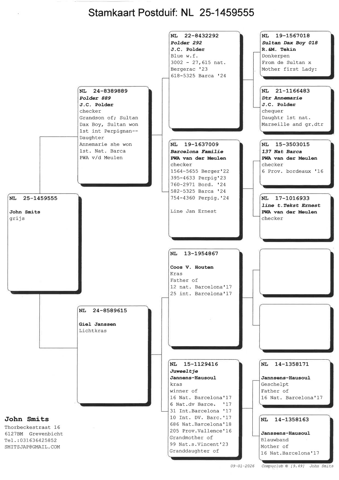 “Sultan” won 1st Int. Perpignan; daughter “Annemarie” won 1st Nat. Barcelona (PWA vd Meulen).