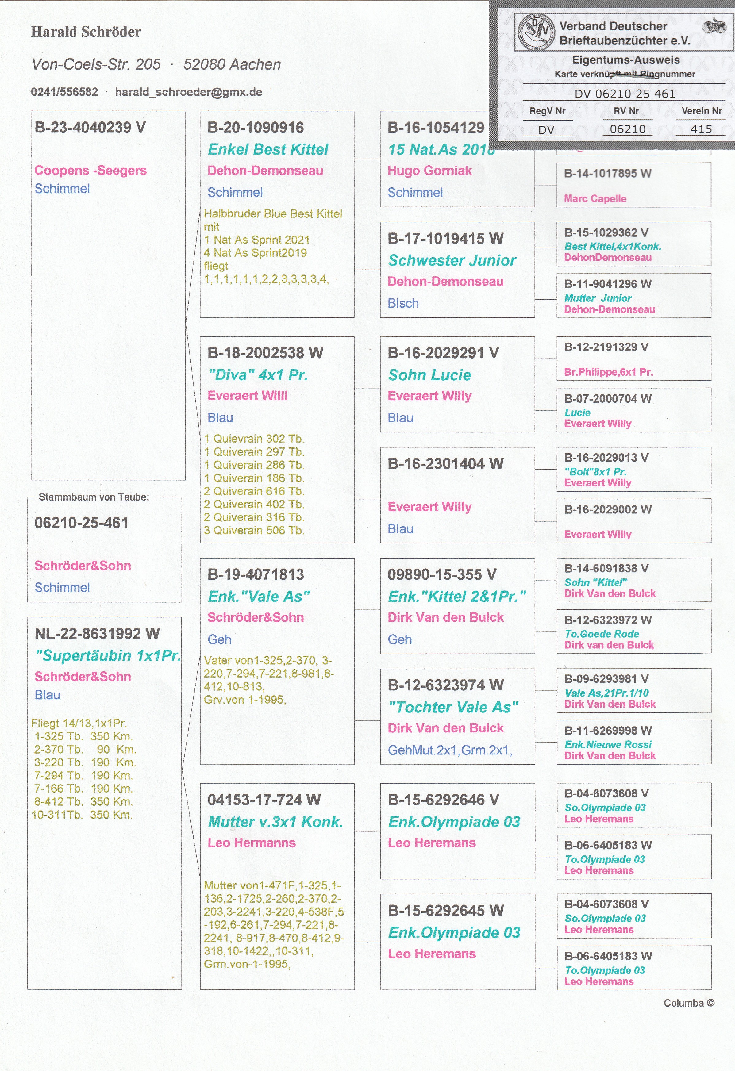 Schroder Harald ( Aken (D) schenkt een duiver 2025 ter plaatse
