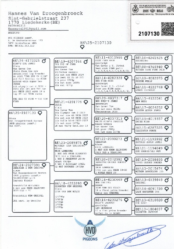 Van Droogenbroeck Hannes (Liedekerke ) schenkt een zomerjong duivin 2025 ter plaatse