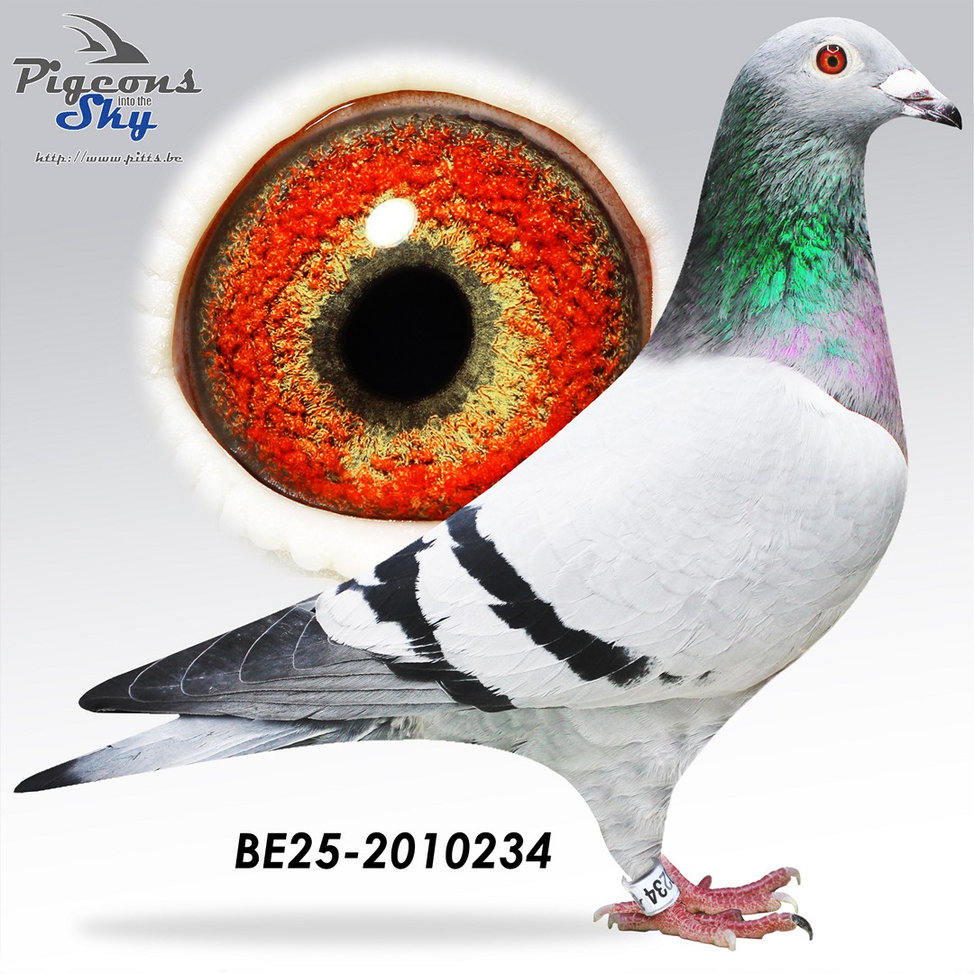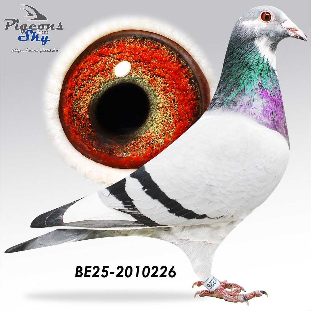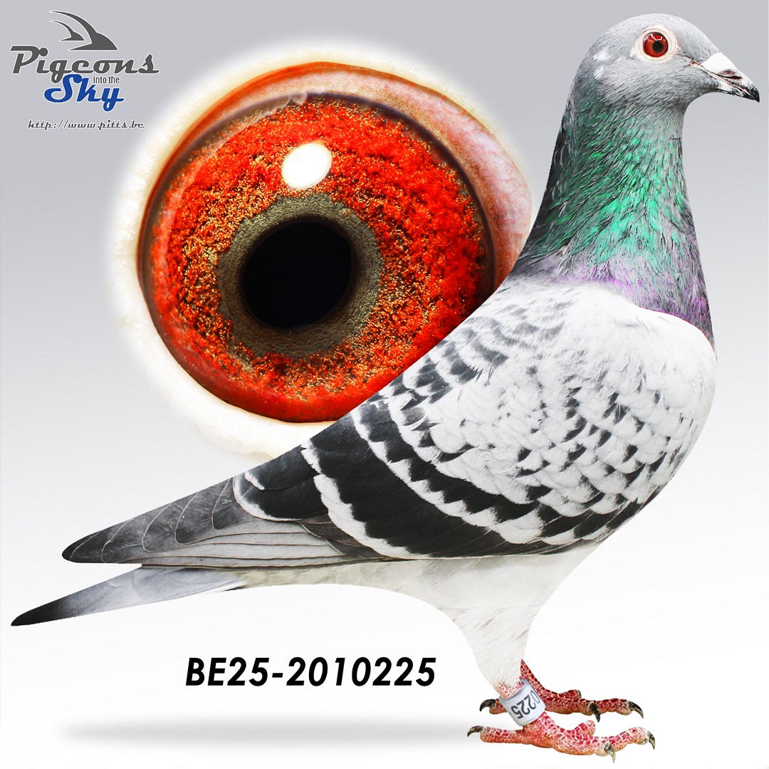 Comes from inbred “Rudy” – “Papillon” x Daughter “De 17” from “Black Grey-Eyed” Geerinckx x granddaughter “Poot” x “Vechterke” Gommaire Verbruggen