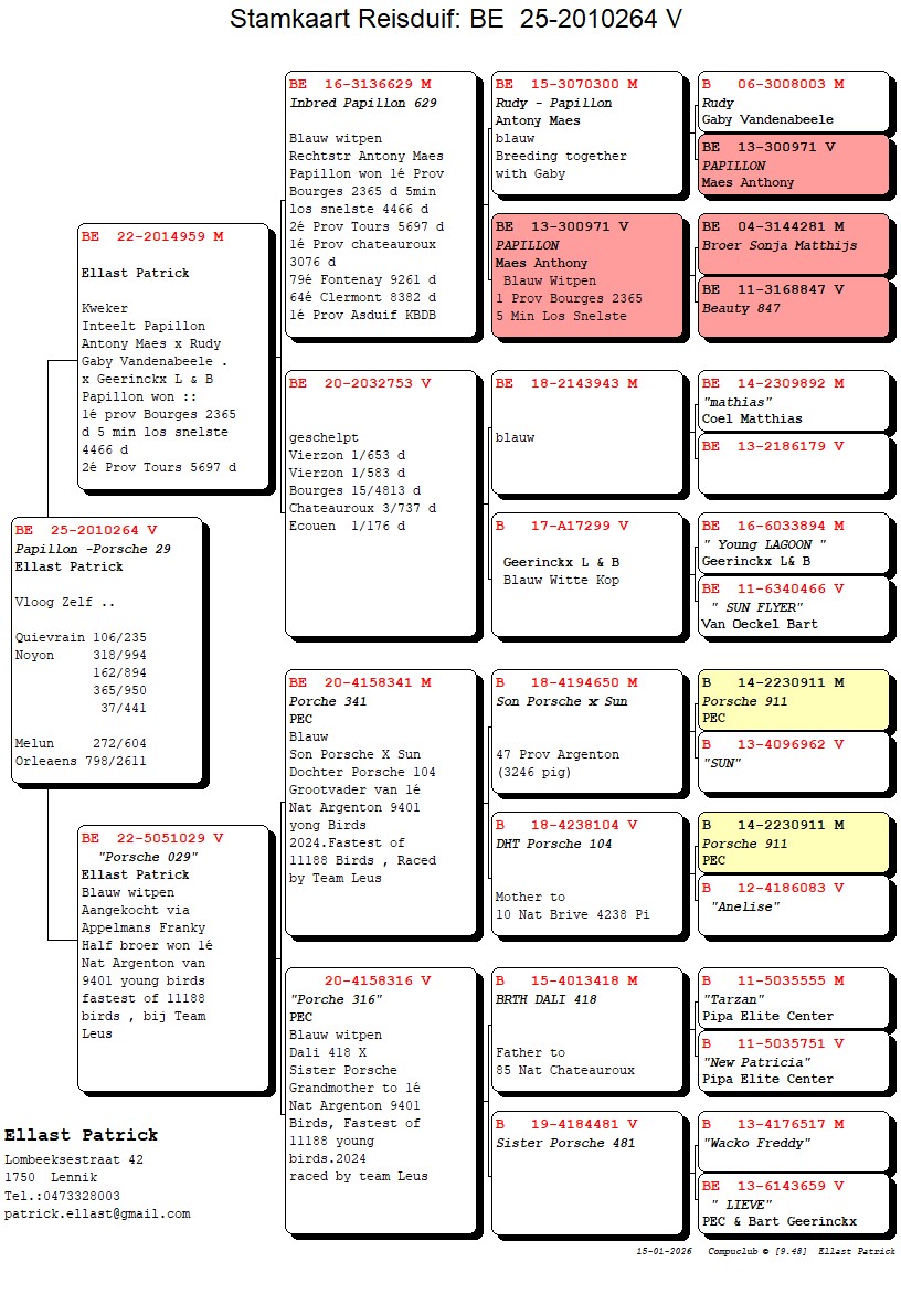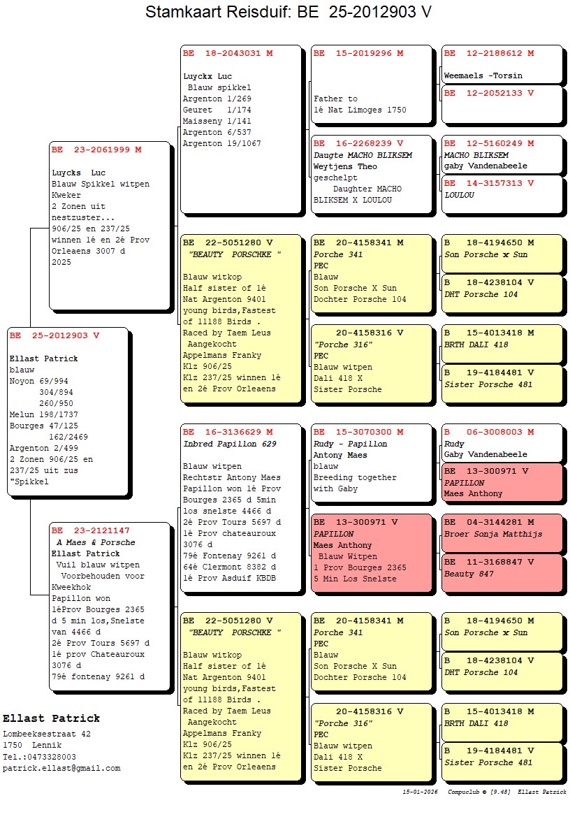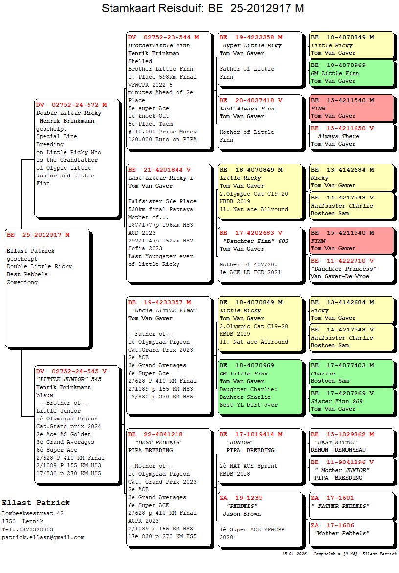 Half-brother won 1° National Argenton 9401 YB – fastest of 11188d (Team Leus)