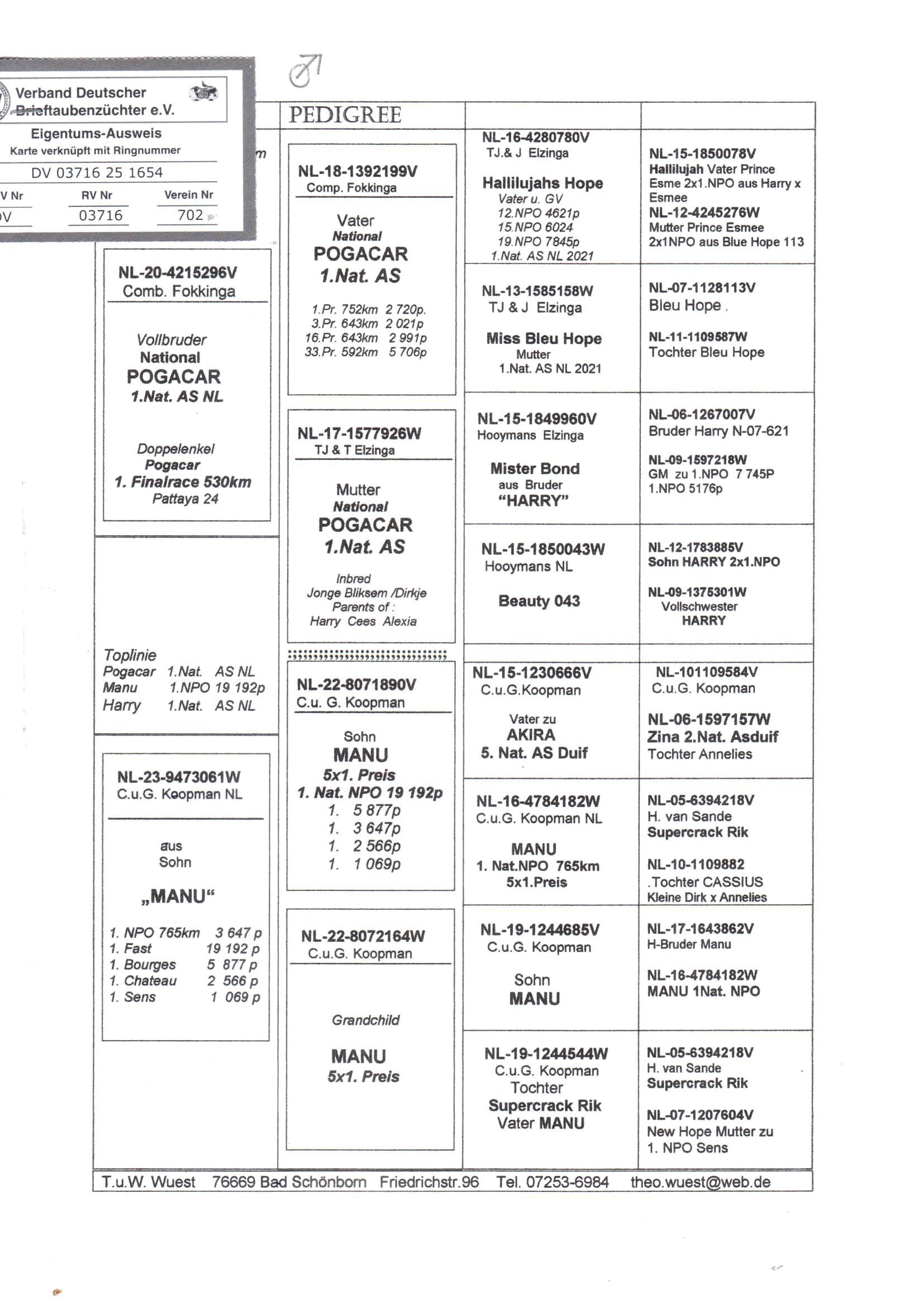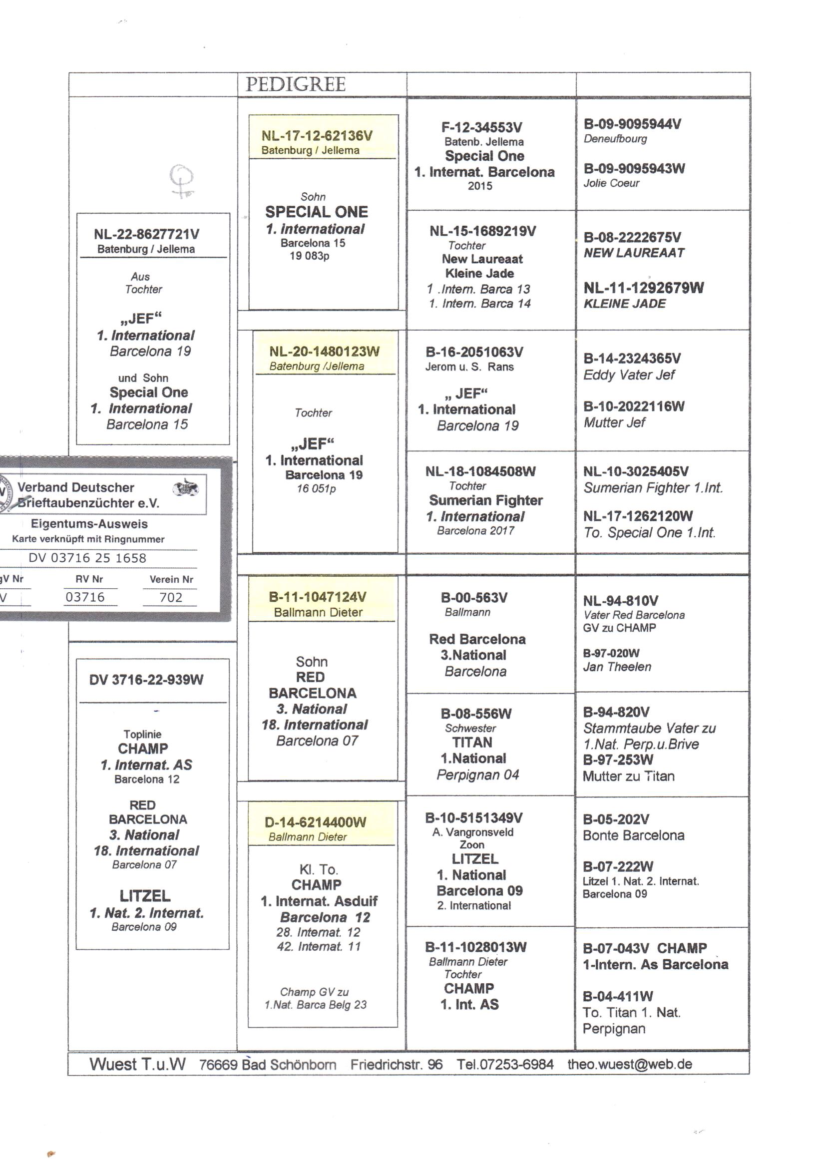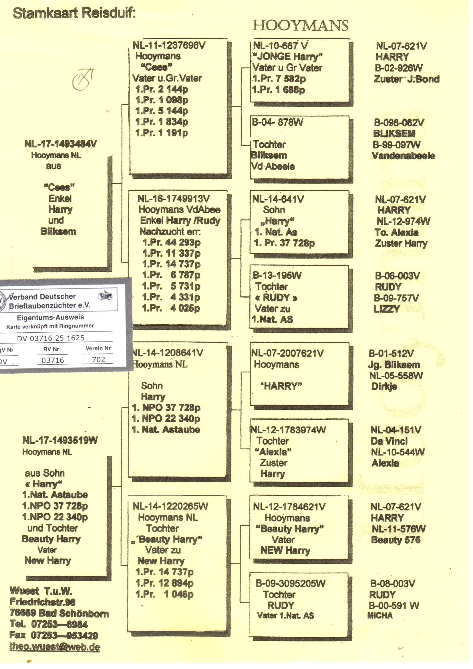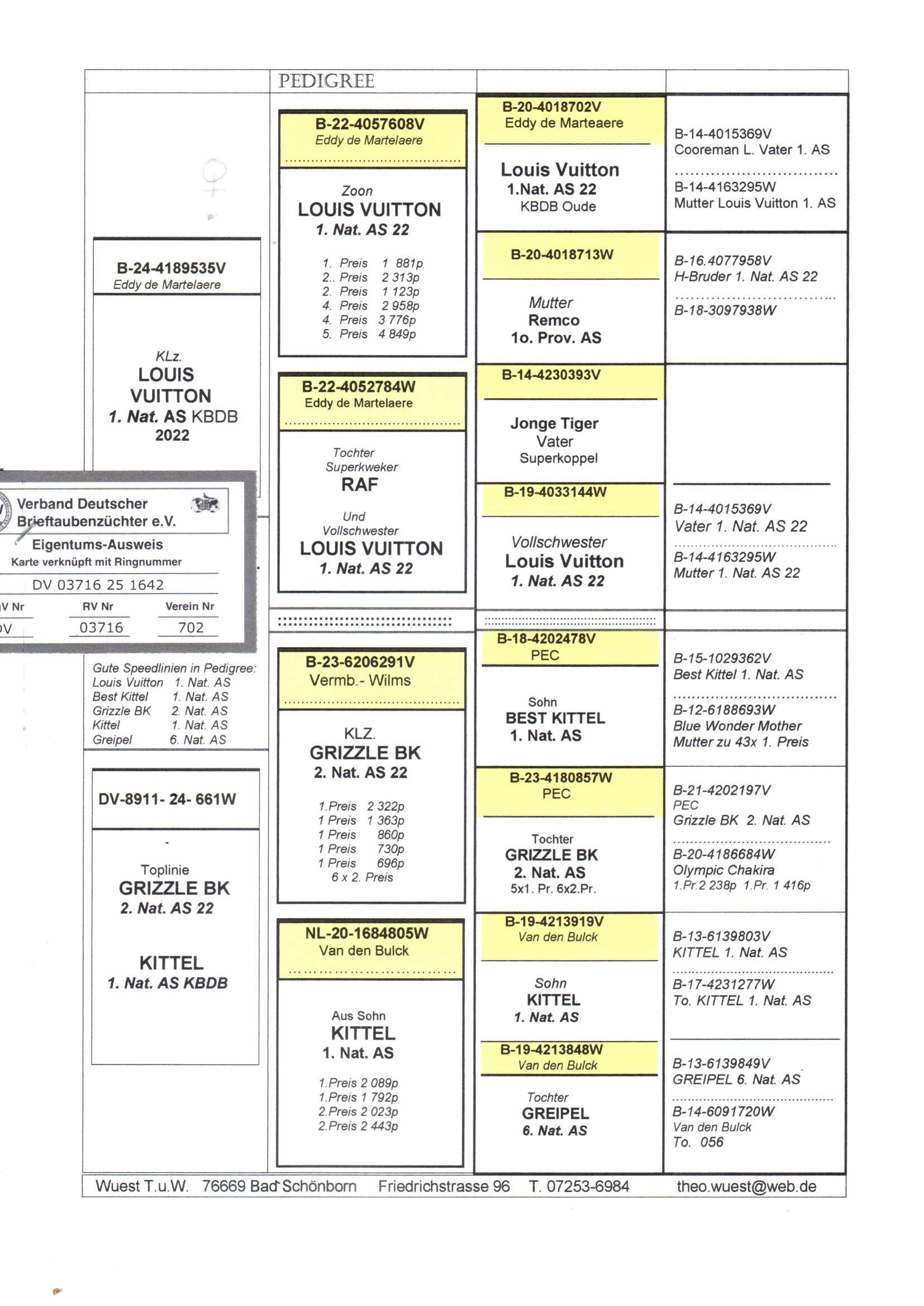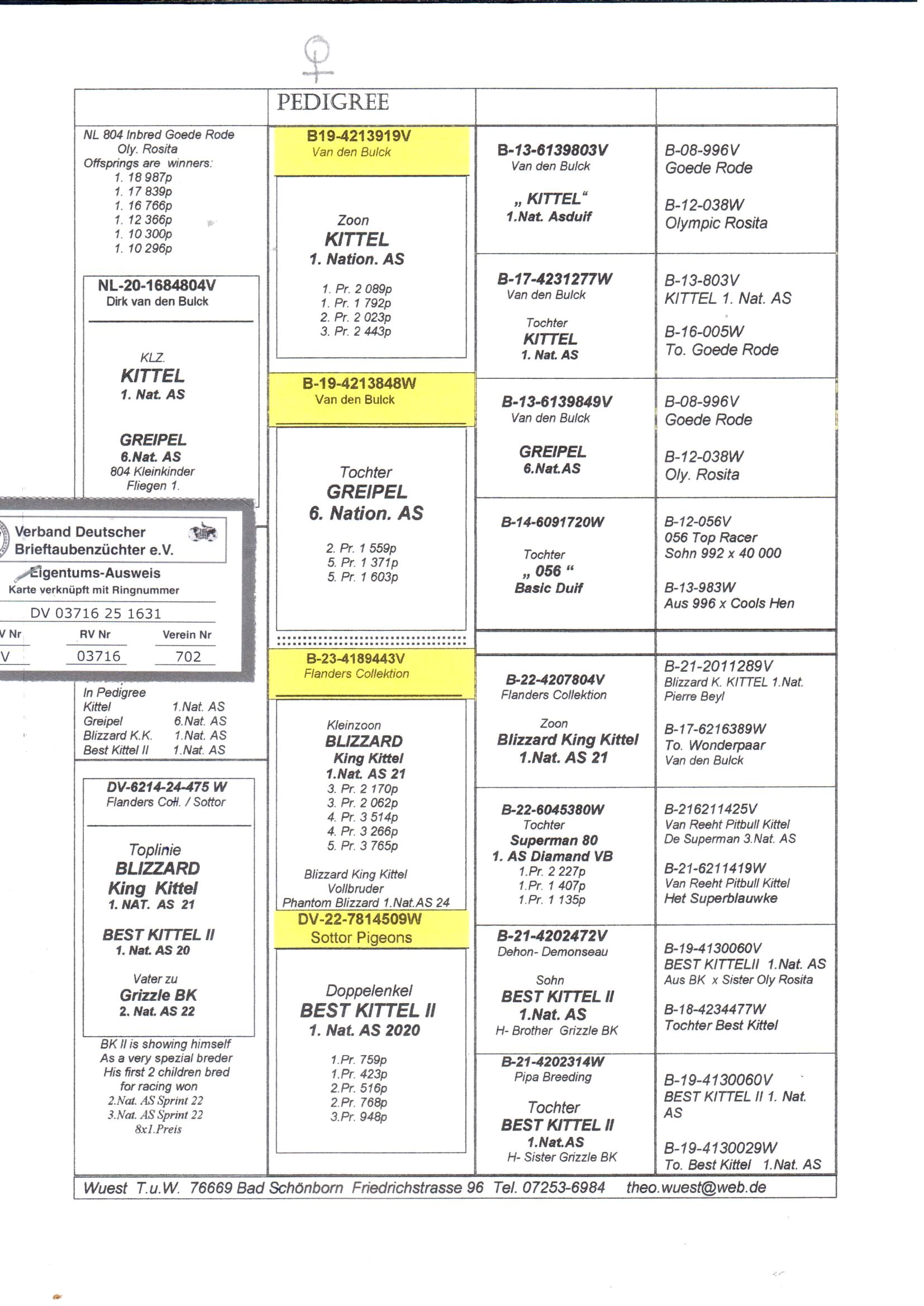 Les colombiers de Theo Wüst sont situés à Bad Schönborn, en Allemagne, à mi-chemin entre Francfort et Stuttgart. Depuis des années, il recherche les descendants des meilleurs pigeons du monde, ne lésinant pas sur les moyens pour les acquérir. Des noms de renommée mondiale tels que Kittel, Greipel, Porsche, White Man, Olympic Rico, Kaasboer, Wonderboy, Jackpot, Special One, Golden Prince, Harry, Jef, Champ, Murphy's Law et Di Caprio font la fierté de ses colombiers d'élevage. Son talent pour les meilleurs pigeons lui a permis de rencontrer les meilleurs amateurs du monde entier et a depuis fait de ses colombiers l'un des plus réputés, avec de nombreuses références en Allemagne et à l'étranger!