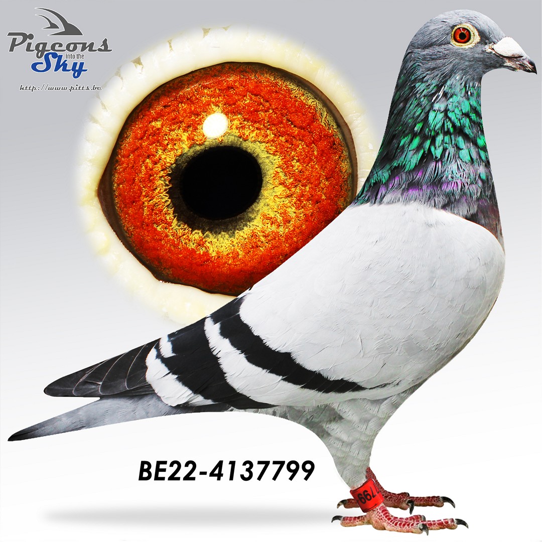 Sire of top pigeons such as “Kevin” (1st Melun 3,400 b. – 1st/1,250 b.), “Sofia”, “Pearl”.