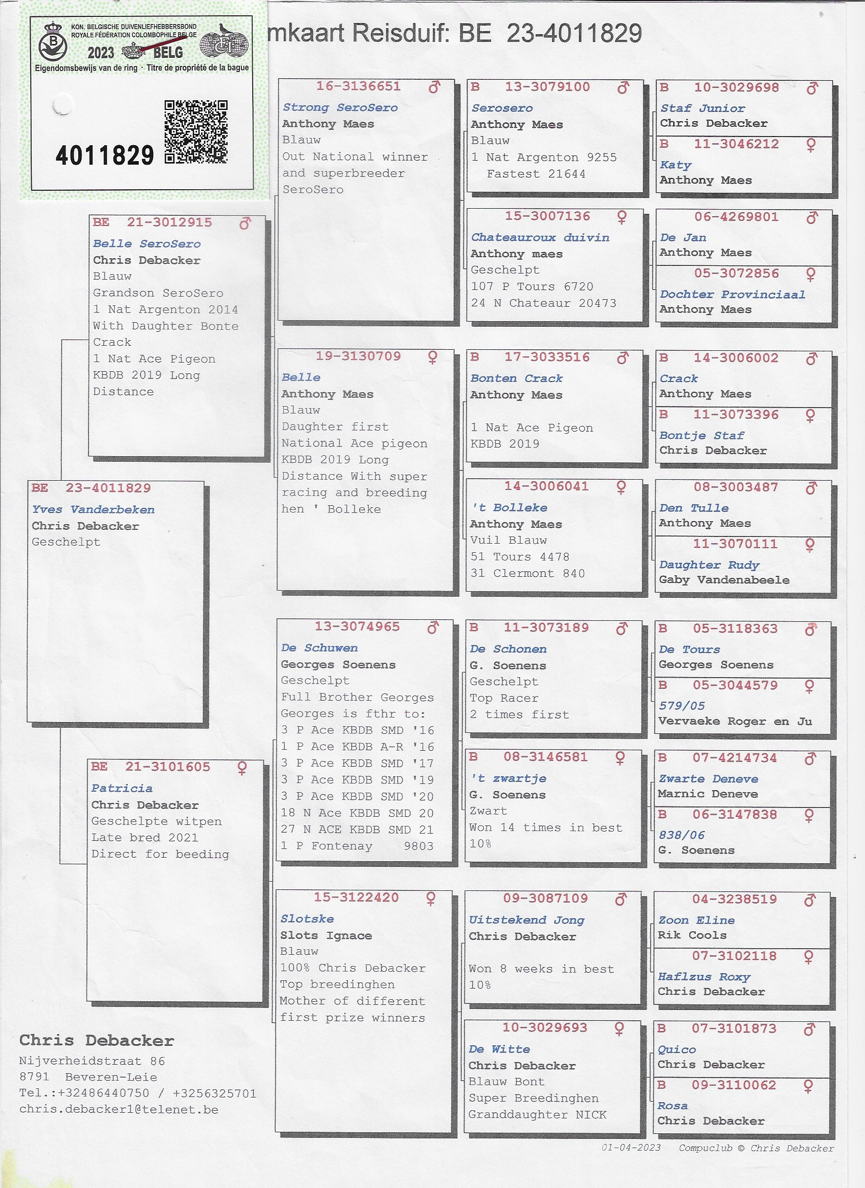 From the breeding loft of Chris Debacker: where Georges laid the foundation of success and Bonte Crack & Sero Sero wrote history…
