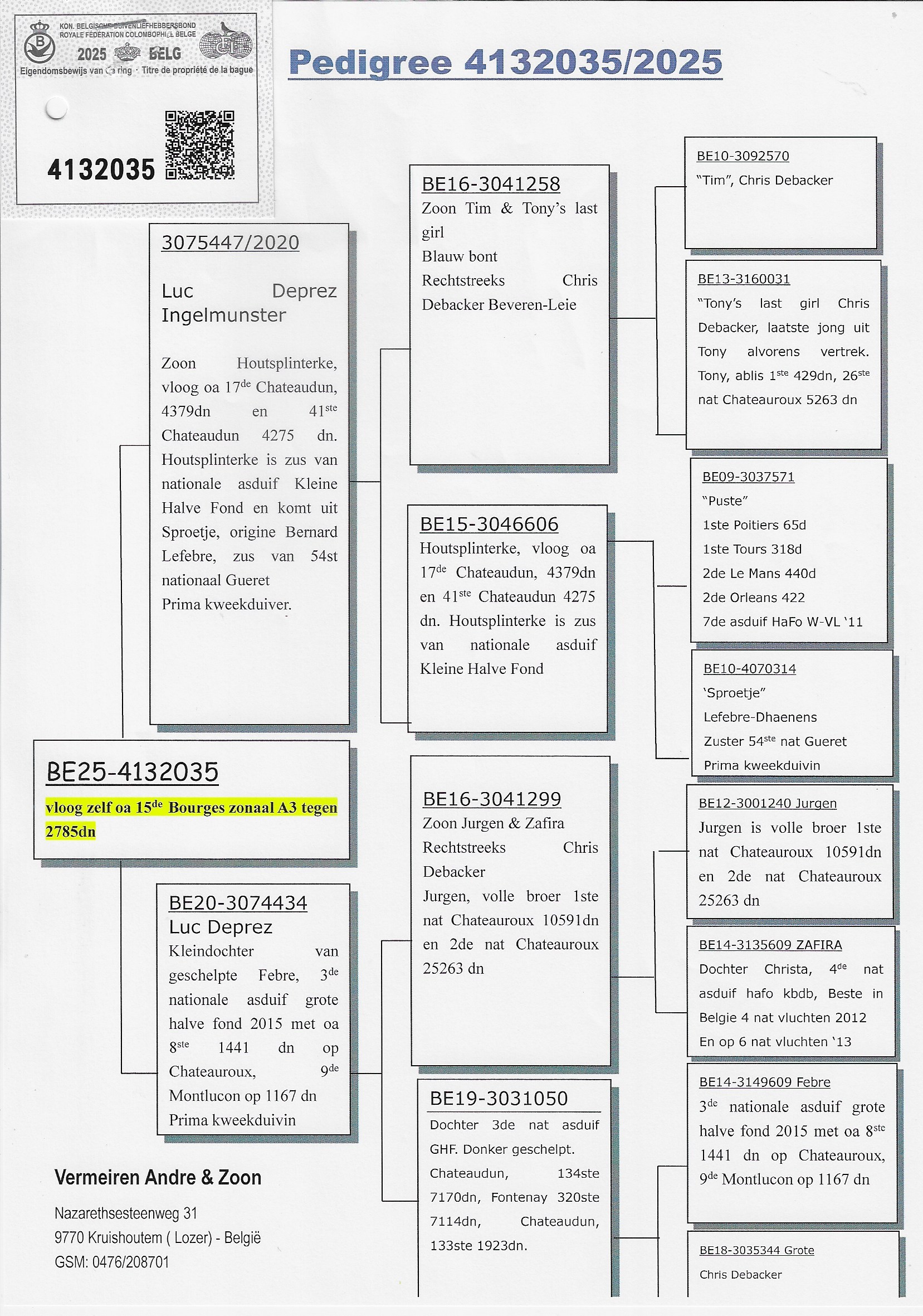 Directly from the champion loft of Chris Debacker – Beveren-Leie, from his very best lines, such as: