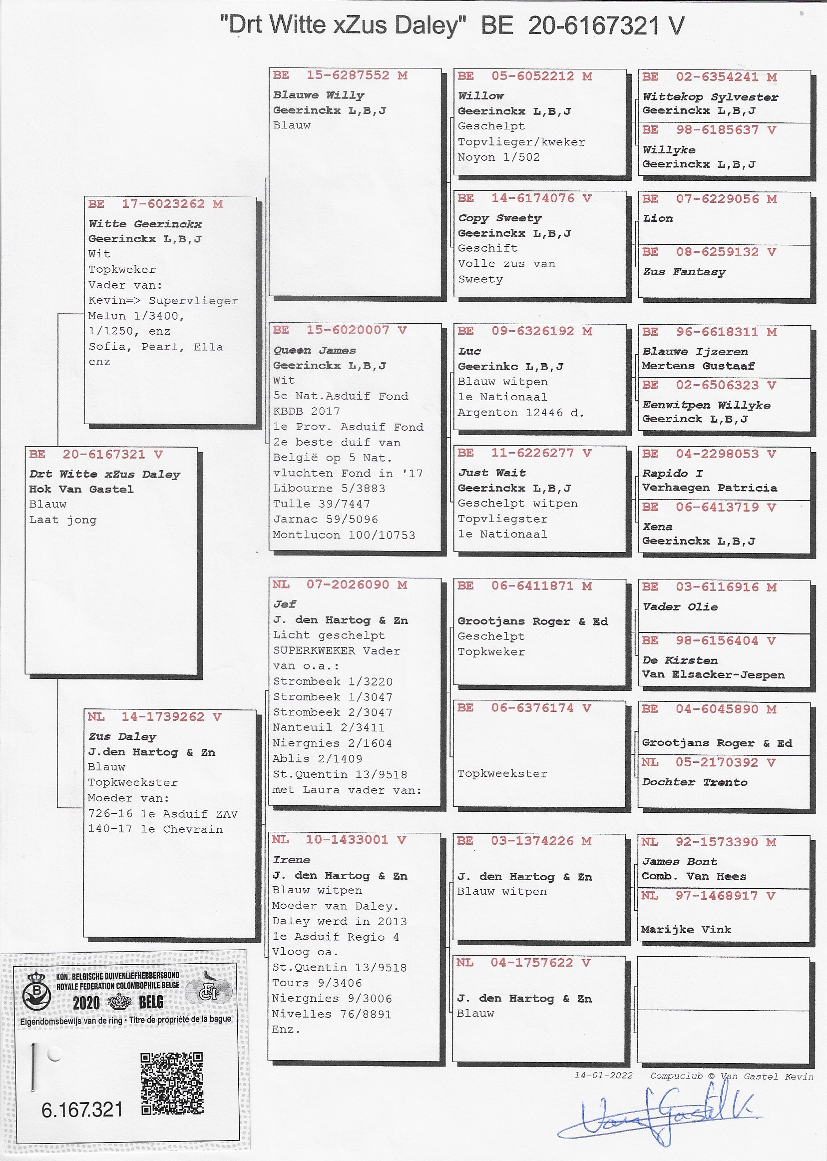 Father: “Witte Geerinckx” B17-6023262 – original Bart Geerinckx