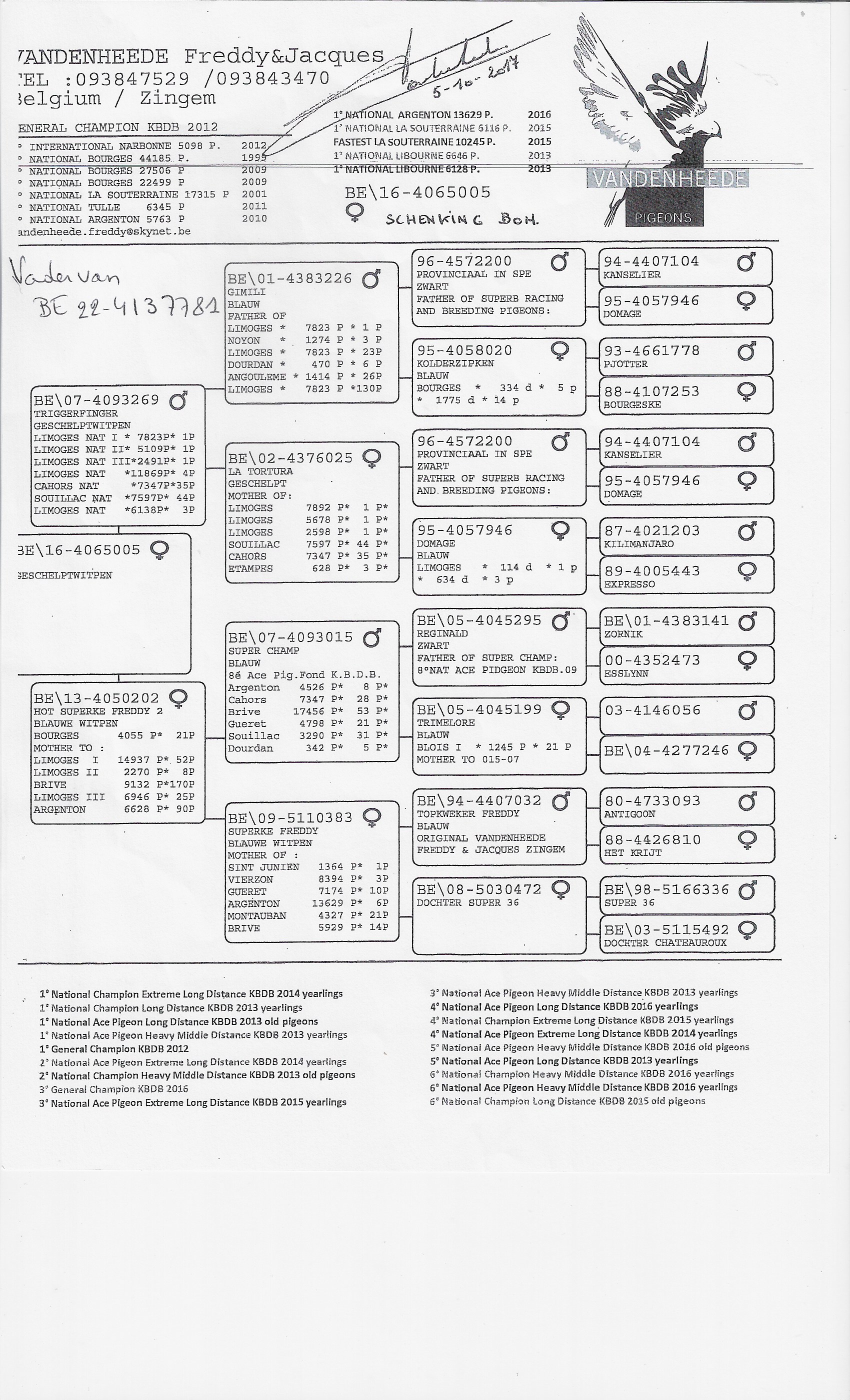 From the absolute top lines of Freddy & Jacques Vandenheede – proven national winners and foundation breeders delivering champions generation after generation.