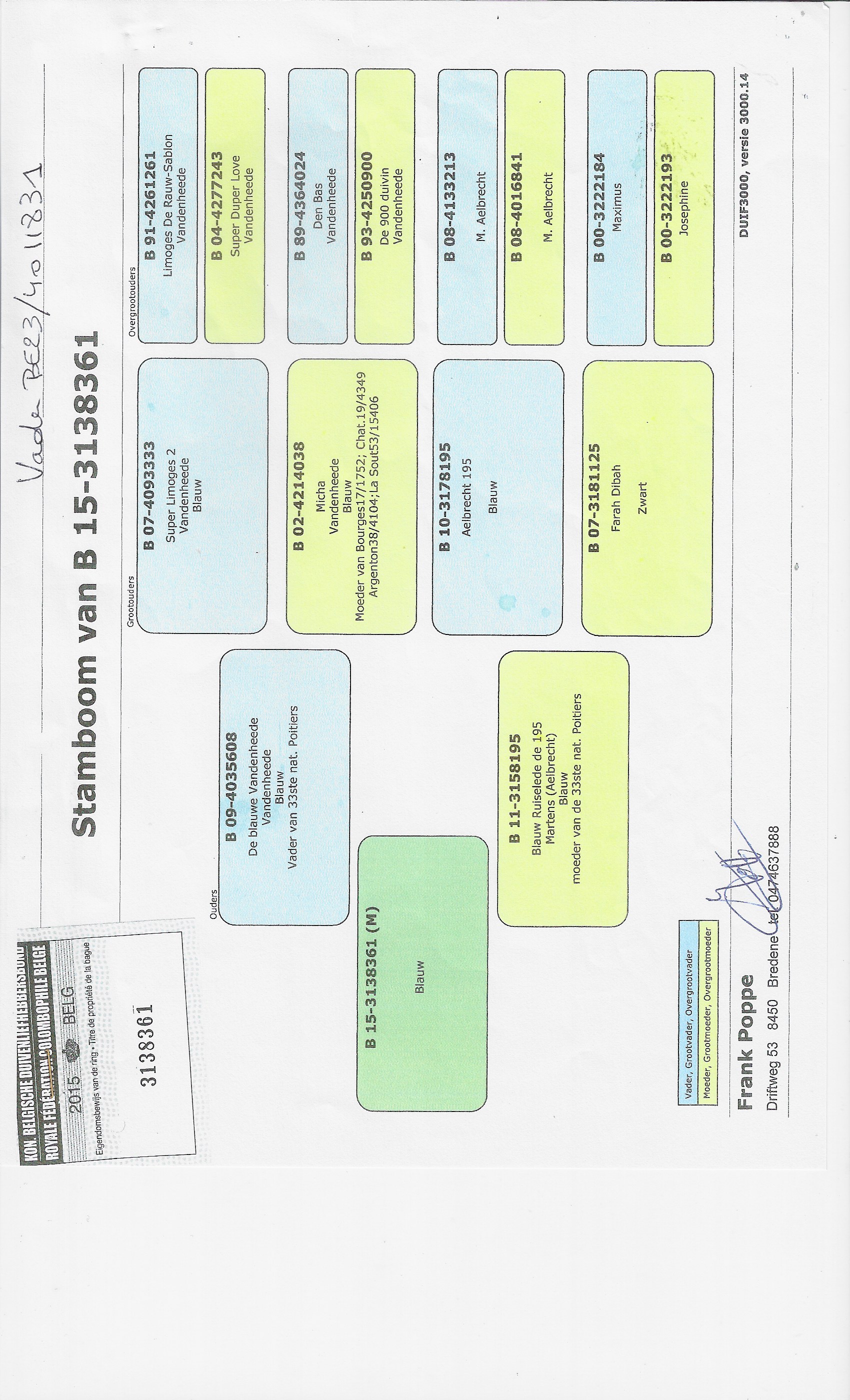 Father is BE15-3138361, an all-round top flyer with multiple 1st prizes from Arras to Argenton. His results include: