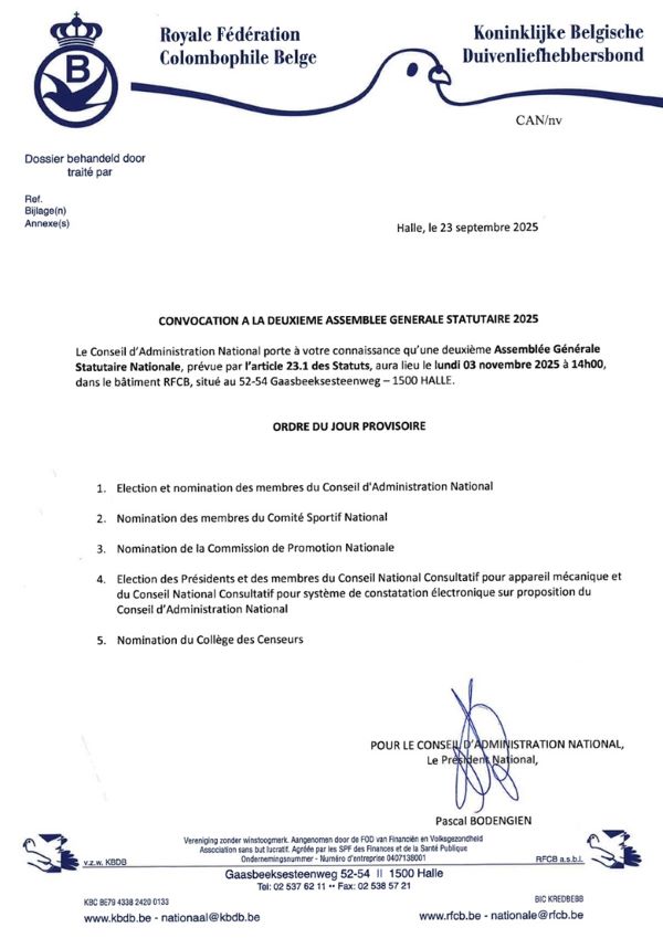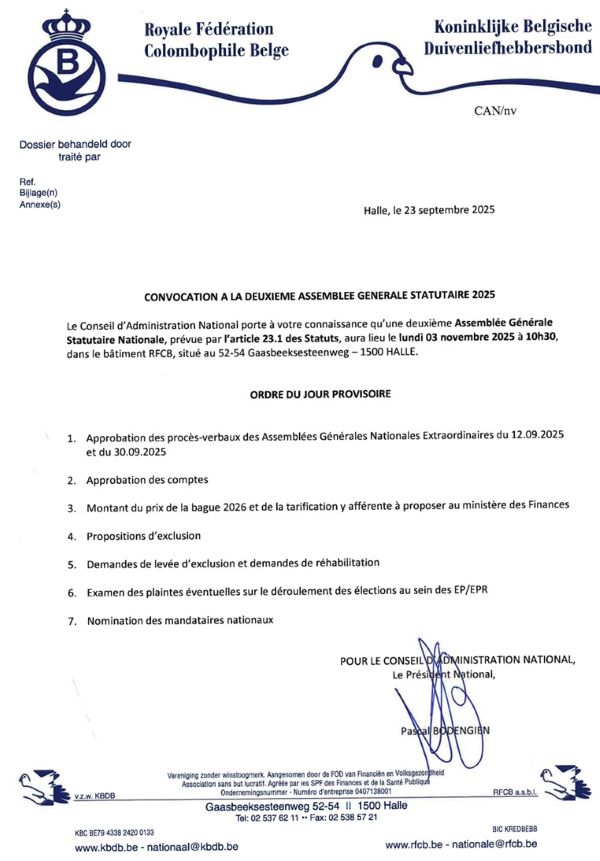 Assemblée Générale Nationale 3-11-2025 L’ordre du jour