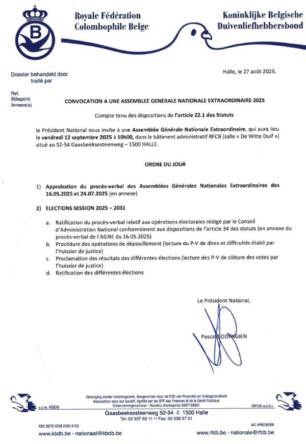 28-08-2025 Communiqué de la RFCB – Assembléé Générale Nationale Extraordinaire 12-09-2025 – l’ordre du jour provisoire