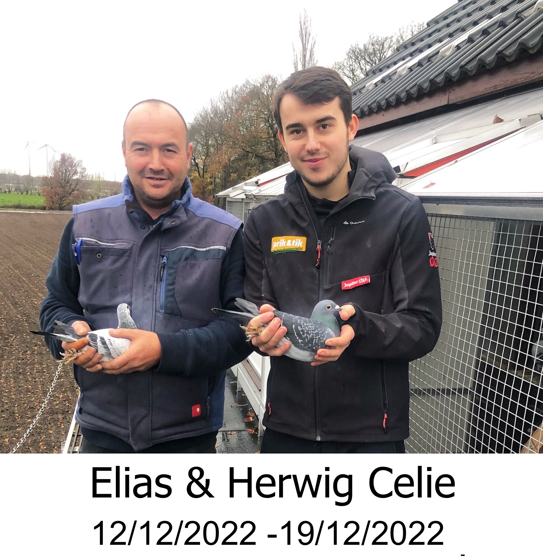 Elias Celie (22 ans) est entré en contact avec le sport colombophile en aidant son grand-père qui partageait la même passion. De par sa profession de chef coq, Elias ne peut pas toujours s’occuper ‘’fulltime’’ de ses pigeons, mais il est bien aidé par son père Herwig (âgé de 53 ans) qui gagne sa vie comme marchand de boissons indépendant. Le matin, c’est surtout Herwig qui prend les tâches à son compte et l’après-midi, Elias prend le relais. Toutes les décisions sont toujours prises en concertation mutuelle entre le père et le fils. Chez les Celie, l’accent est mis sur le grand demi-fond, dont ils ont déjà remporté 3 X le 2eme provincial et donc chaque fois juste à côté de la victoire ! l’objectif est, d’après leurs propres dire, d’enfin remporter un 1er provincial.