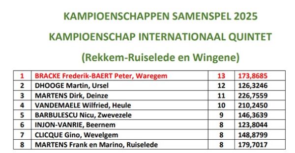 Championnats 2025 REKKEM-RUISELEDE & WINGENE