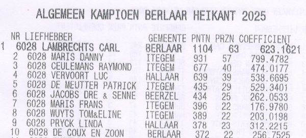 Championnats 2025 Verbroedering BERLAAR HEIKANT