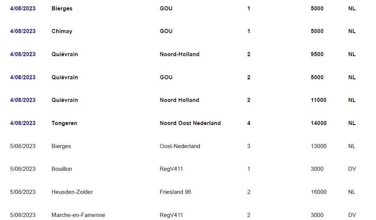 Veuillez noter que certaines lâchers étrangers auront lieu en Belgique le vendredi 04/08/2023.