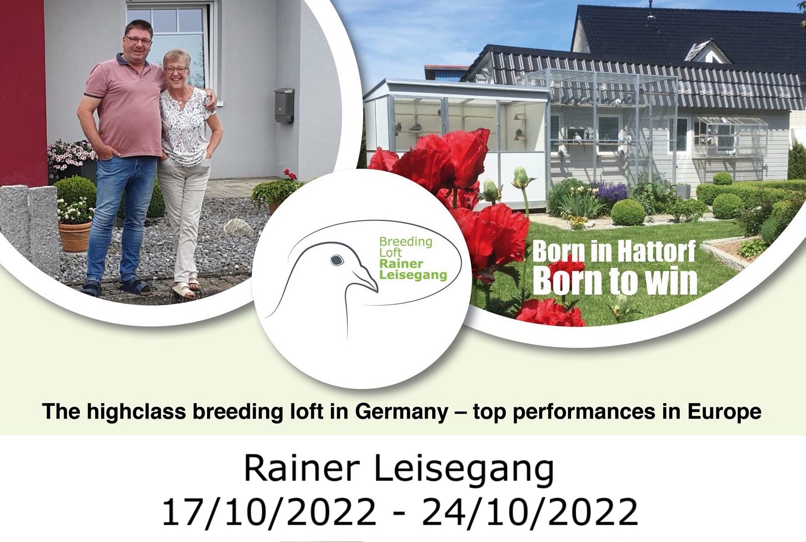 En 2009, Rainer Leisegang et son épouse Gerlinde ont débuté la colombophilie par la construction – à tout le moins—d’un colombier de reproduction professionnel à Hattorf am Harz, en Allemagne. Et maintenant, 13 ans plus tard, les références émanant des colonies satellites sont quasiment impossible à comptabiliser tellement elles sont nombreuses. C’est un pigeonnier de reproducteurs composé de supers géniteurs qui donnent des vainqueurs de premiers prix et des as-pigeons avec une réelle facilité …