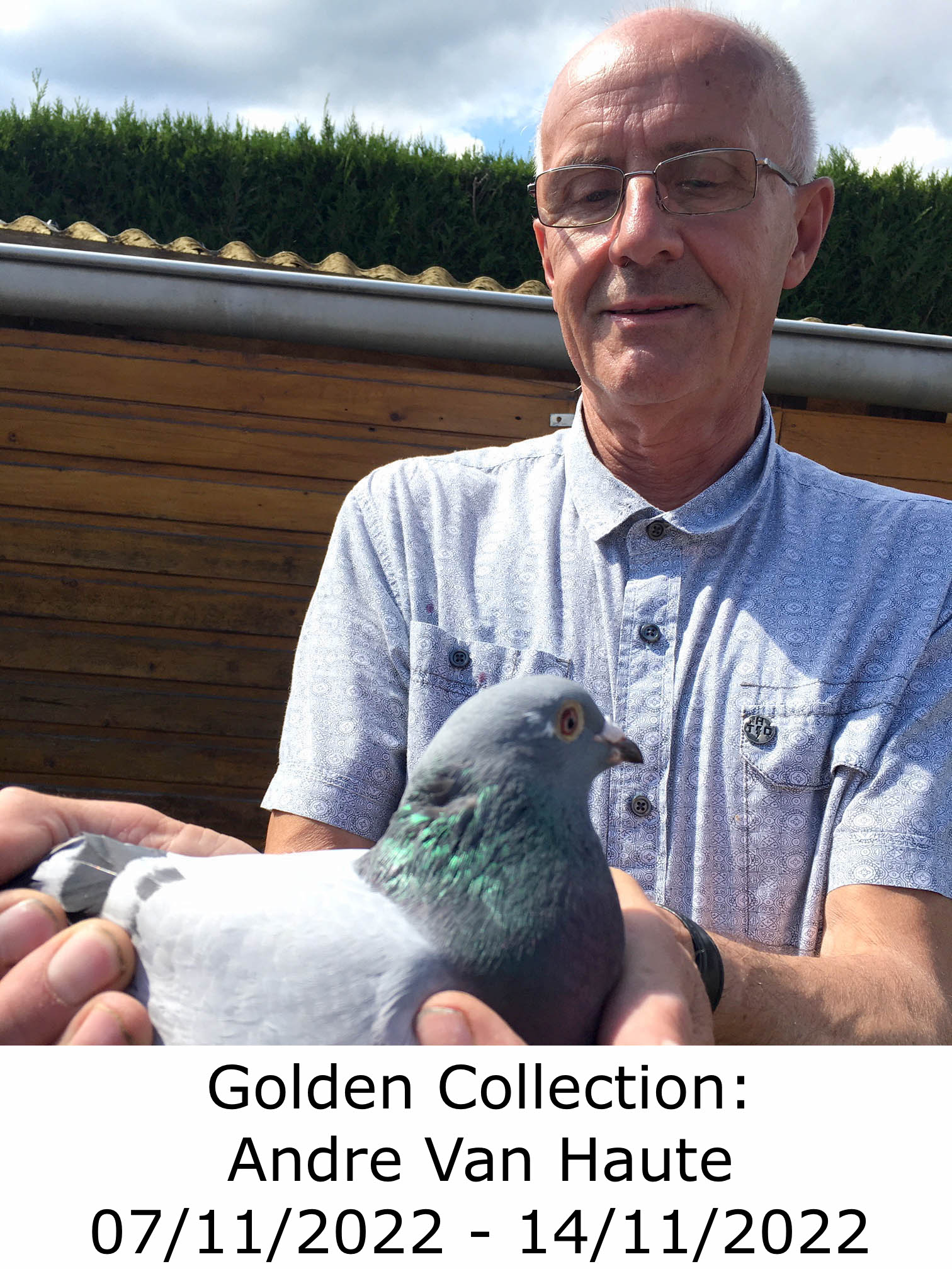 André a déjà commencé l’aventure colombophile en 1972. Alors qu’il était en fait connu depuis de nombreuses années comme un virtuose de la vitesse, il a choisi en 2013-2014 d’aussi prendre part aux concours de demi-fond et de grand demi-fond. Depuis, nous retrouvons toutes les semaines son nom en haut des résultats, et de la vitesse pure jusqu’au grand demi-fond ! les races qui en sont responsables ici sont : logiquement aussi pas les moindres. Au cours des 7-8 dernières années, il n’a ménagé ni sa peine ni son argent pour acquérir des cracks de colonies mondialement connues et ceci évidemment avec succès ! Des pigeons directs de Jos Vercammen, de Vermeerbergen-Wilms, de Philippe Dobbelaere, de Luc Delaere, de Gaston Van De Wouwer, de PEC, de Wout Spierings, de Hok Verhestraeten, de Joël Verschoot, de Mark Vlaeminck, de Andreas Drapa, de Broeckx-Van Hees, et de David Vermassen ont pris le chemin du colombier de reproduction à Moerzeke pour former cette souche de grand demi-fond. Mais aussi des pigeons issus des lignées de Gaby Vandenabeele, de Leo Heremans et de Bart Geerinckx ont trouvé un nouveau refuge dans les installations de André.