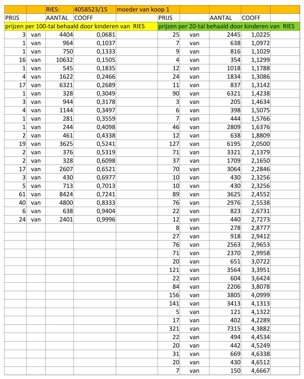 1. Kinderen van “RIES”, zo goed als alle kinderen van deze duivin presteren enorm goed, zowel op de vluchten als op de kweek. Vele liefhebbers zijn reeds aardig gelukt met haar kinderen en kleinkinderen. (zie onderstaande prestatielijst!)