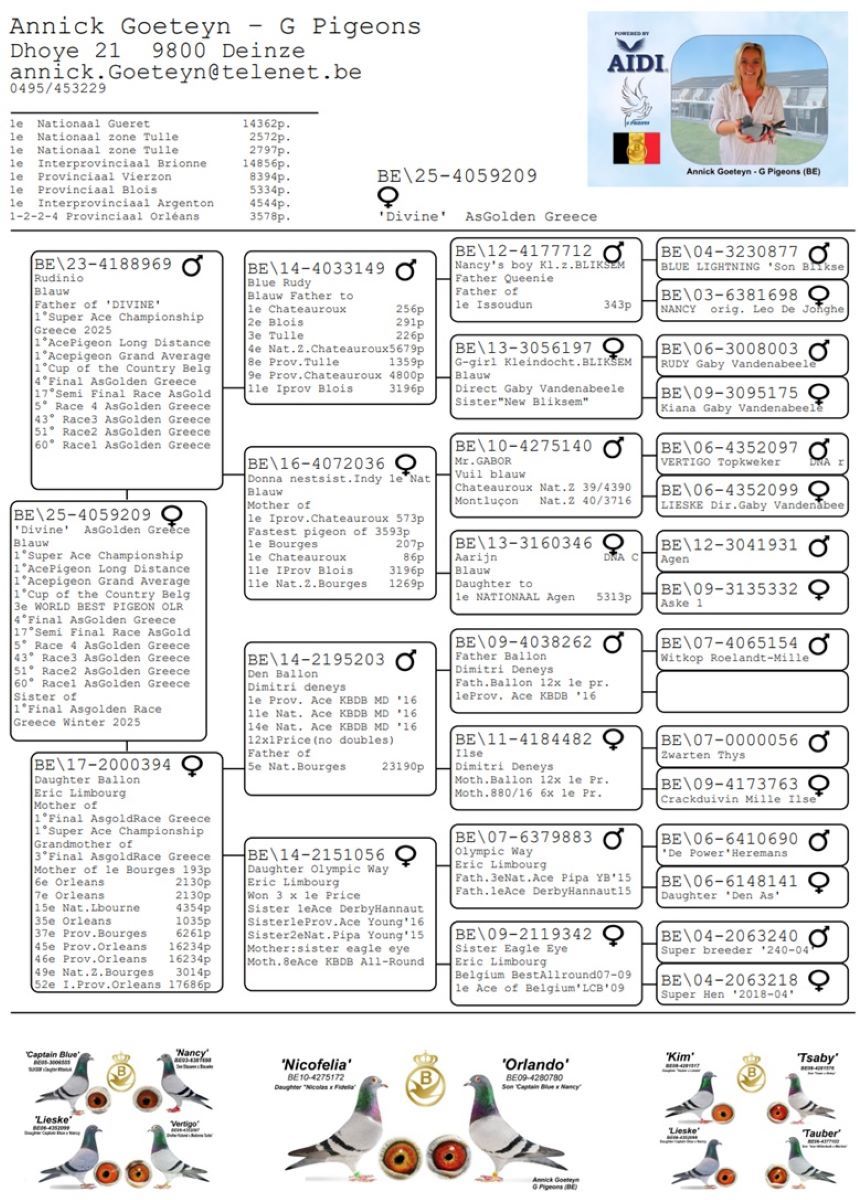 ANNICK GOETEYN - G PIGEONS uit Deinze (Oost-Vlaanderen- wint met BE25-4059209 'Divine' de