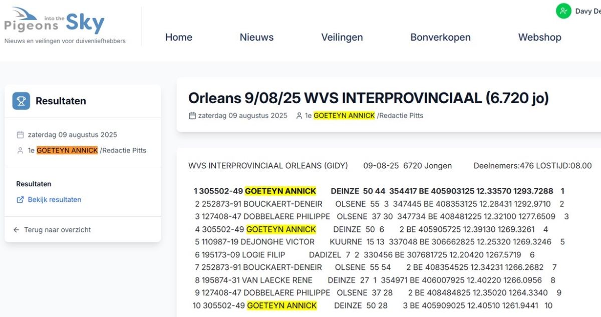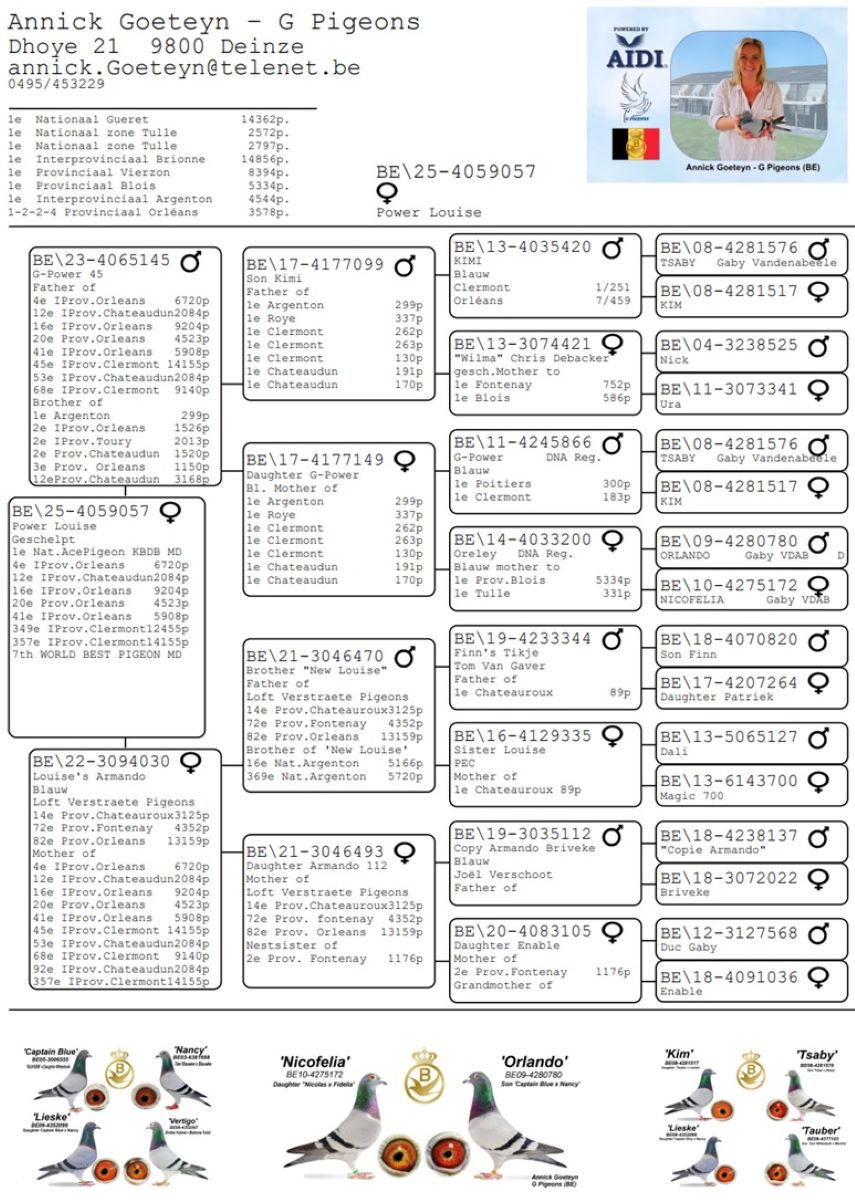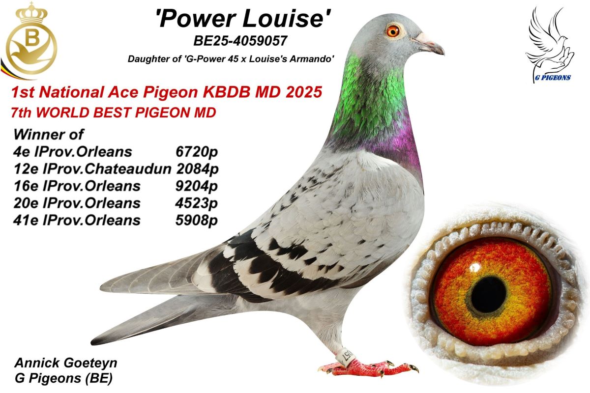 ANNICK GOETEYN - G PIGEONS uit Deinze (Oost-Vlaanderen) wint met BE25-4059057 'Power Louise', een geschelpte duivin, de