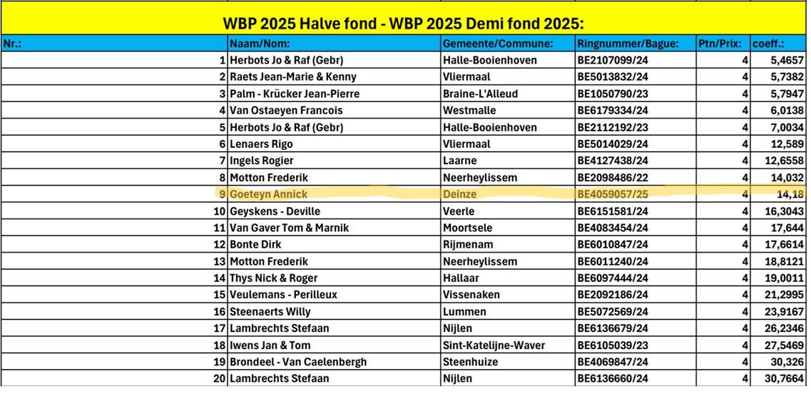1e NATIONALE ASDUIF JONGE DUIVEN KLEINE HALVE FOND 2025 KBDB