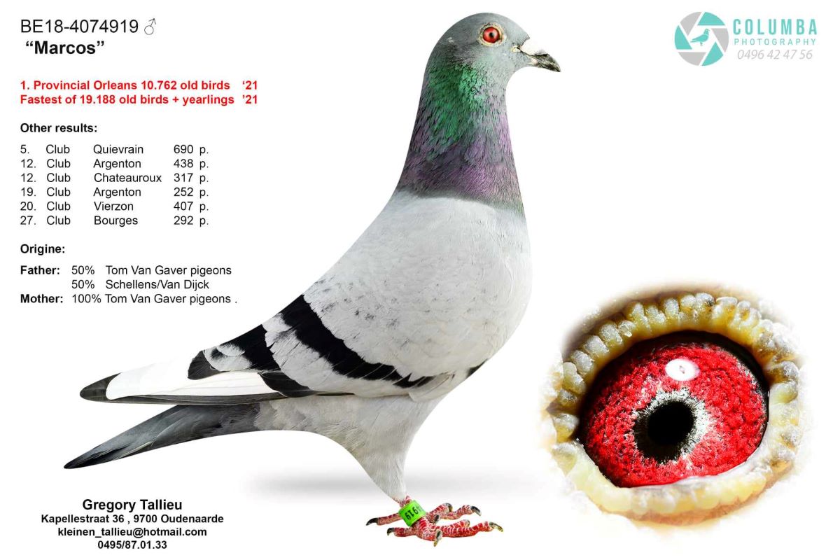 Gregory Tallieu uit Ename - Oudenaarde (Oost-Vlaanderen) wint met BE18-4074919 'Marcos' de
