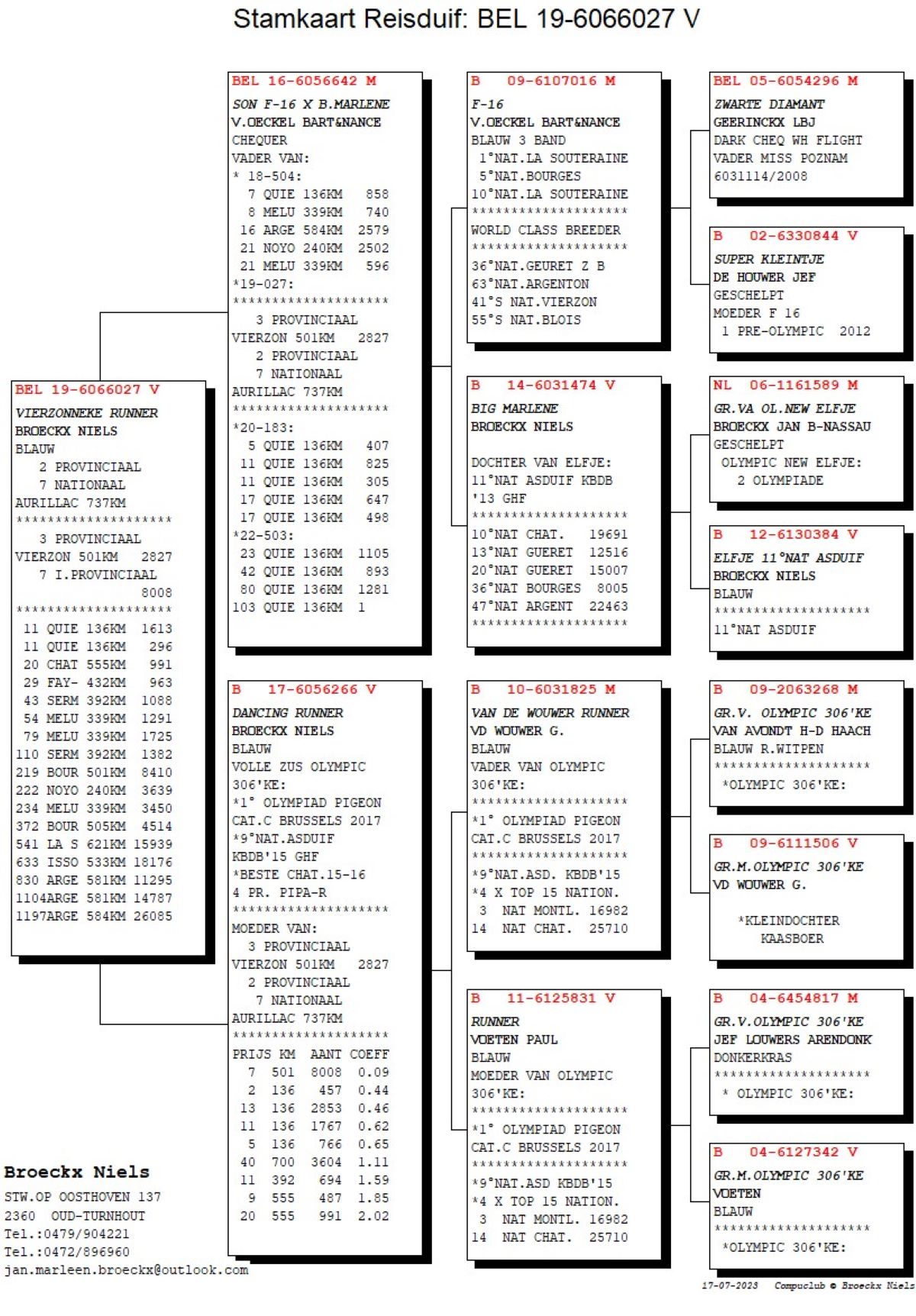 Afstamming/Pedigree BE19-6066027 'Vierzonneke Runner'