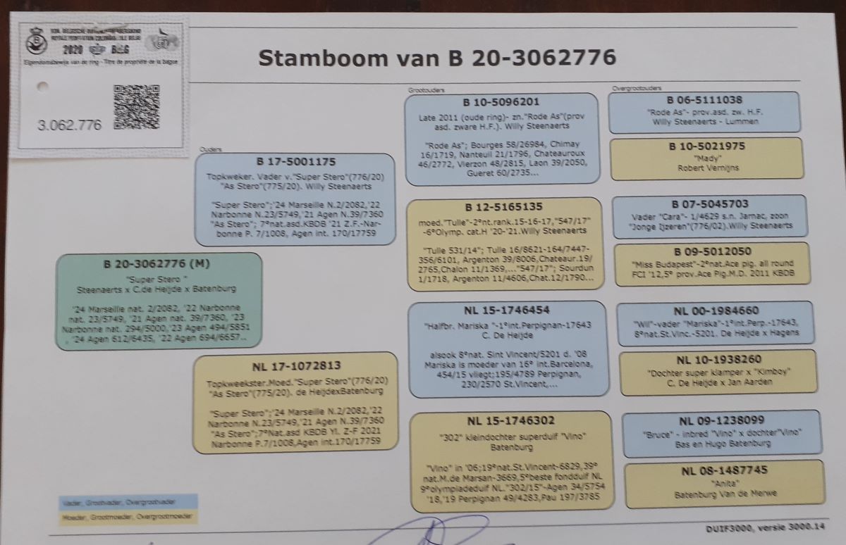 Klik hier voor Pedigree BE20-3062776 'Super Stero'